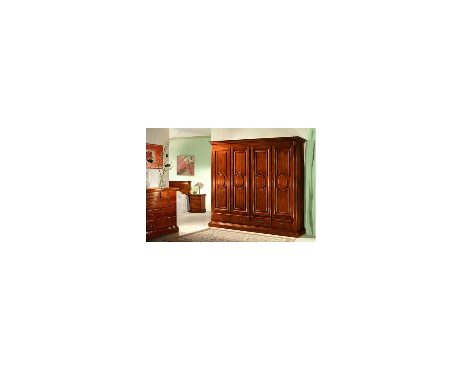 Kleiderschrank 4 Türen und 4 herausnehmbare Schubladen aus Massivholz und Spanplatten Farbe rustikalem Nussbaum, ausgezeichneter italienischer Veneto Produktionsqualität, Lieferung in ganz Italien Lieferzeit 15-20 Tage MASSE L 235 H 217 P 60