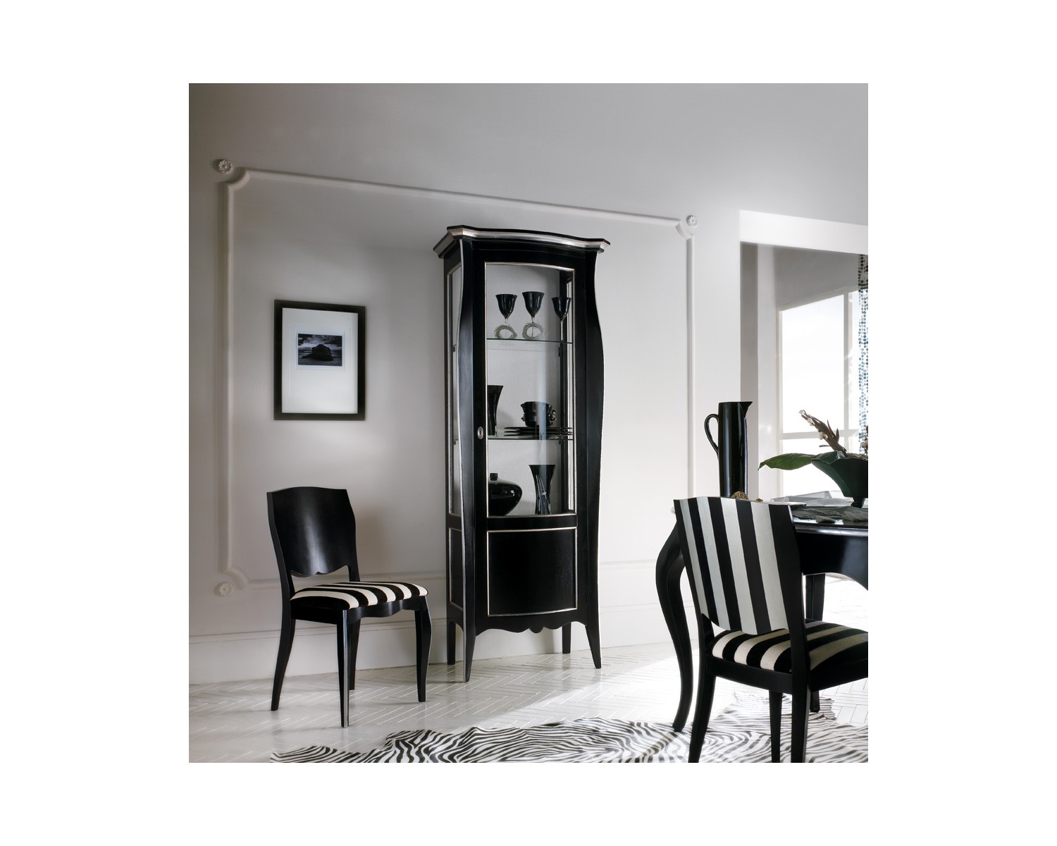 schönes Möbel Vitrine 1 Tür schwarz zweifarbigen fester Silberdraht mit ausgezeichneter handwerklicher Qualität Antik-Effekt Lieferung 20-25 Tagen in ganz Italien Versand MASSE L 78 P 49 H 200