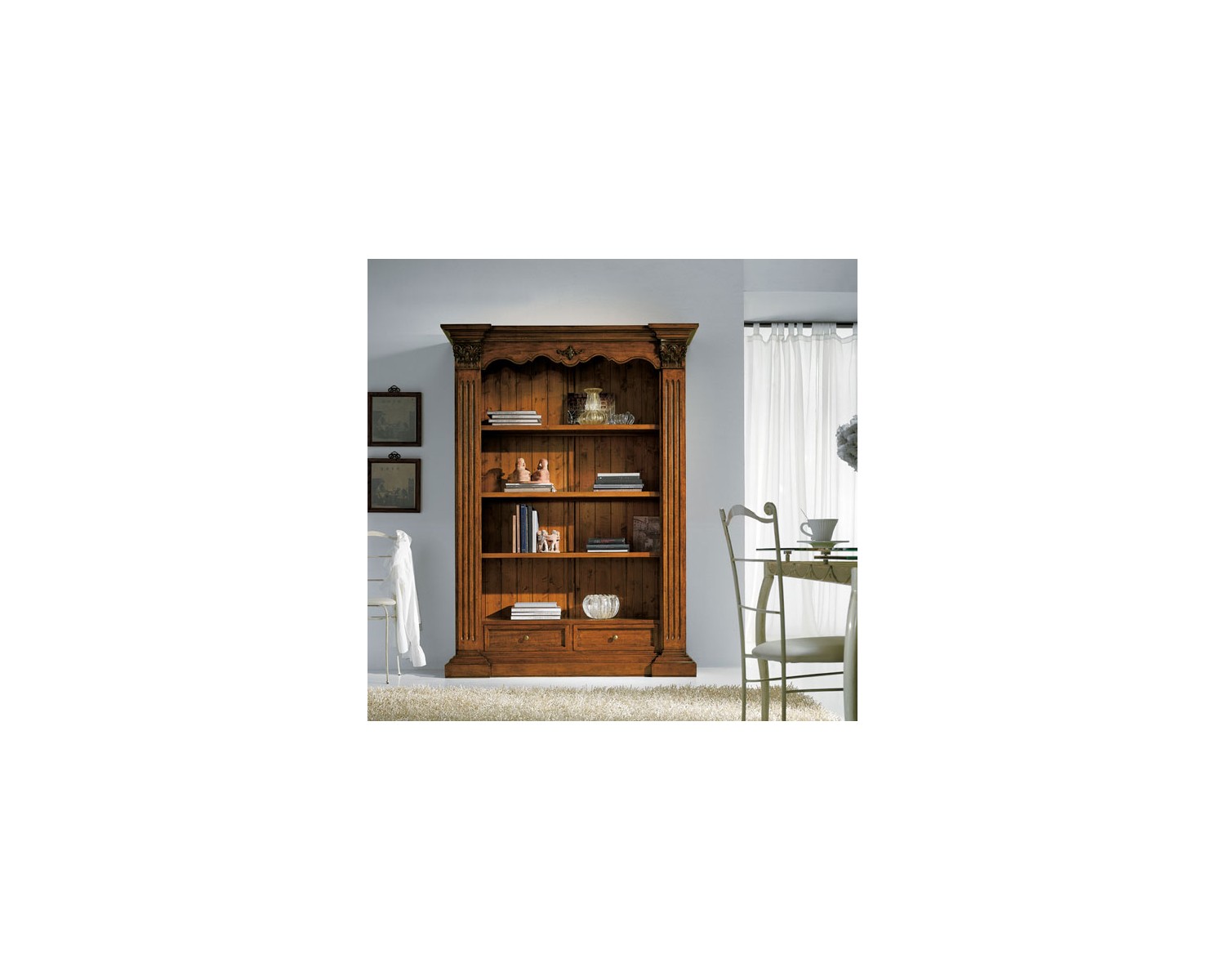 Schönes Bücherregal aus Massivholz und Spanplatten Walnuss Regalen und 2 .3 Casetti fein geschnitzte Gesims in colonne.e Venetian ausgezeichneter Qualität, Lieferzeit 15/20 Tage Versand in ganz Italien MASSE L 154 H 211 P 49