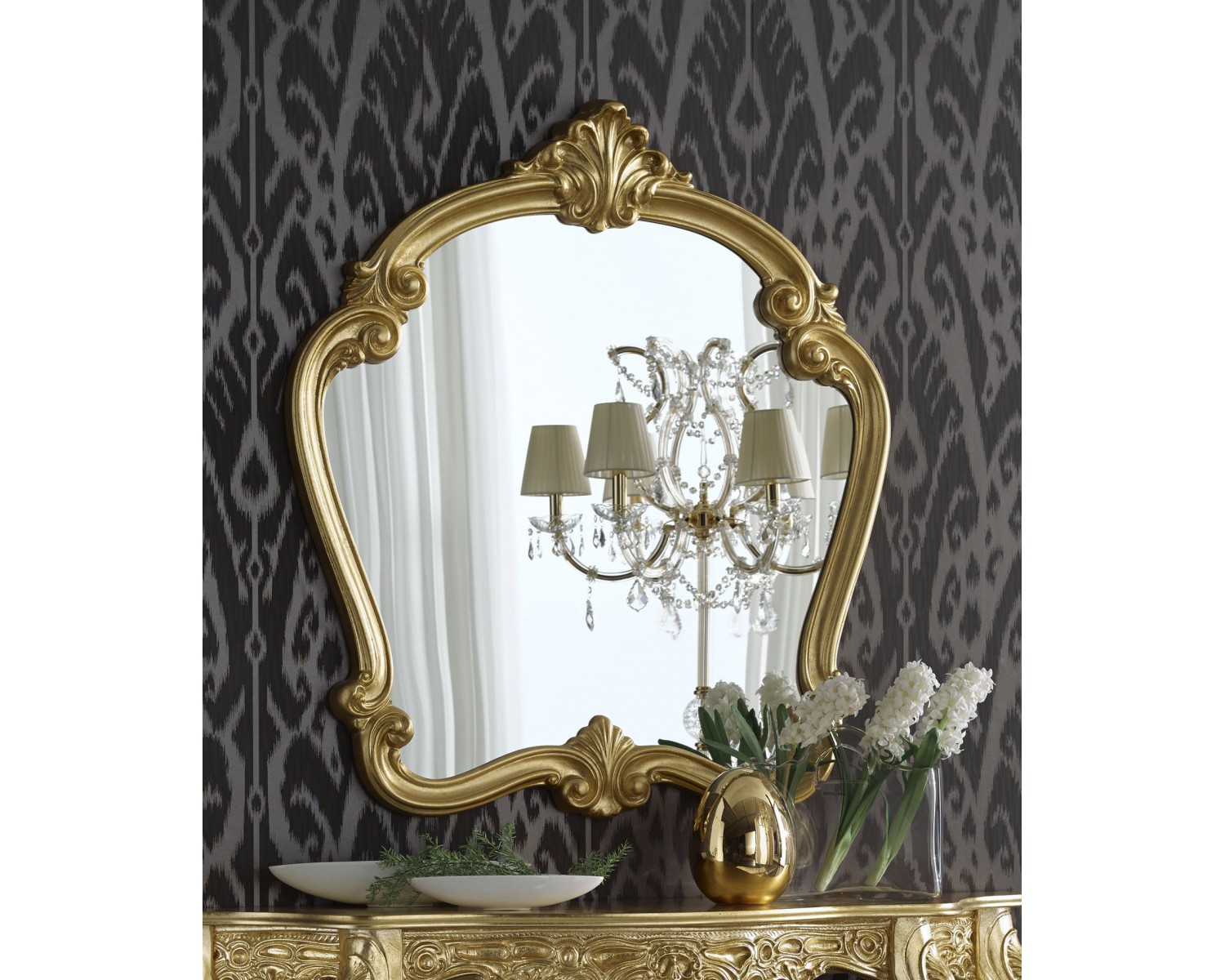 MIRROR WOOD CRAFT MADE IN ITALY - reversible - Venetian artisan product - production time 20 days - Delivery with packing reinforced assured COLOR AS PHOTO - various colors in production: GOLD - SILVER LEAF - IVORY - WHITE - BLACK - TWO TONE - reversible DIMENSION CM 106 X 95 X 9