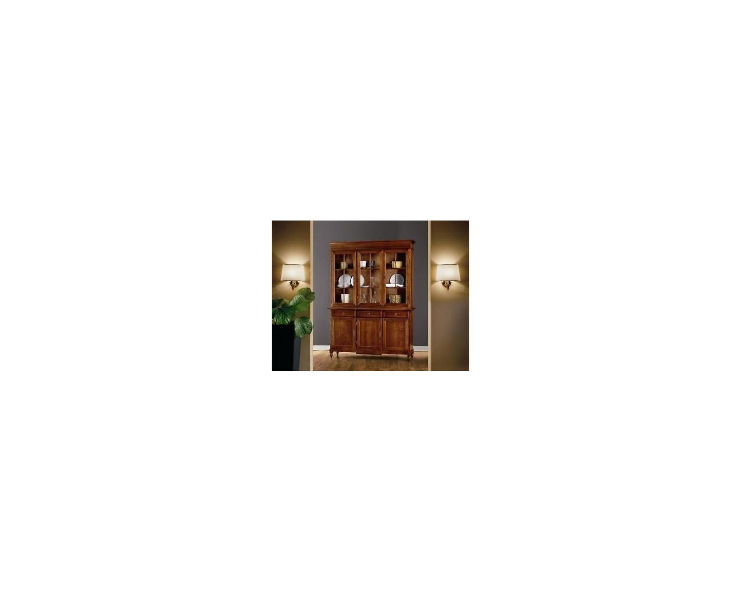 furniture sideboard 3 doors and 3 drawers with 3 doors showcase with solid shelves and agglomeration rustic walnut excellent artisan quality delivery 20-25 days shipping throughout Italy DIMENSIONS L 156 P 42 H 213