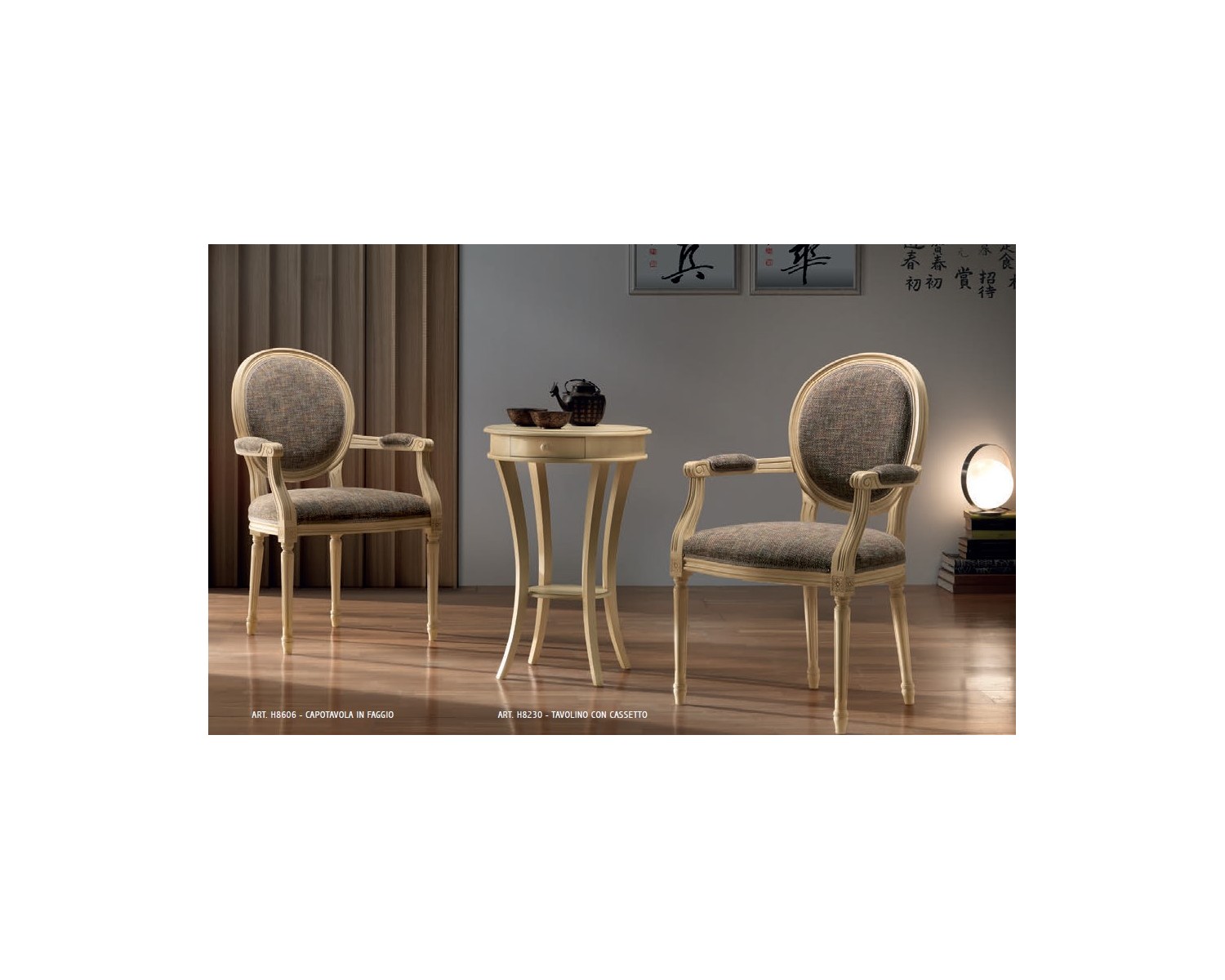 Capotavola in faggio con schienale e seduta da tappezzare