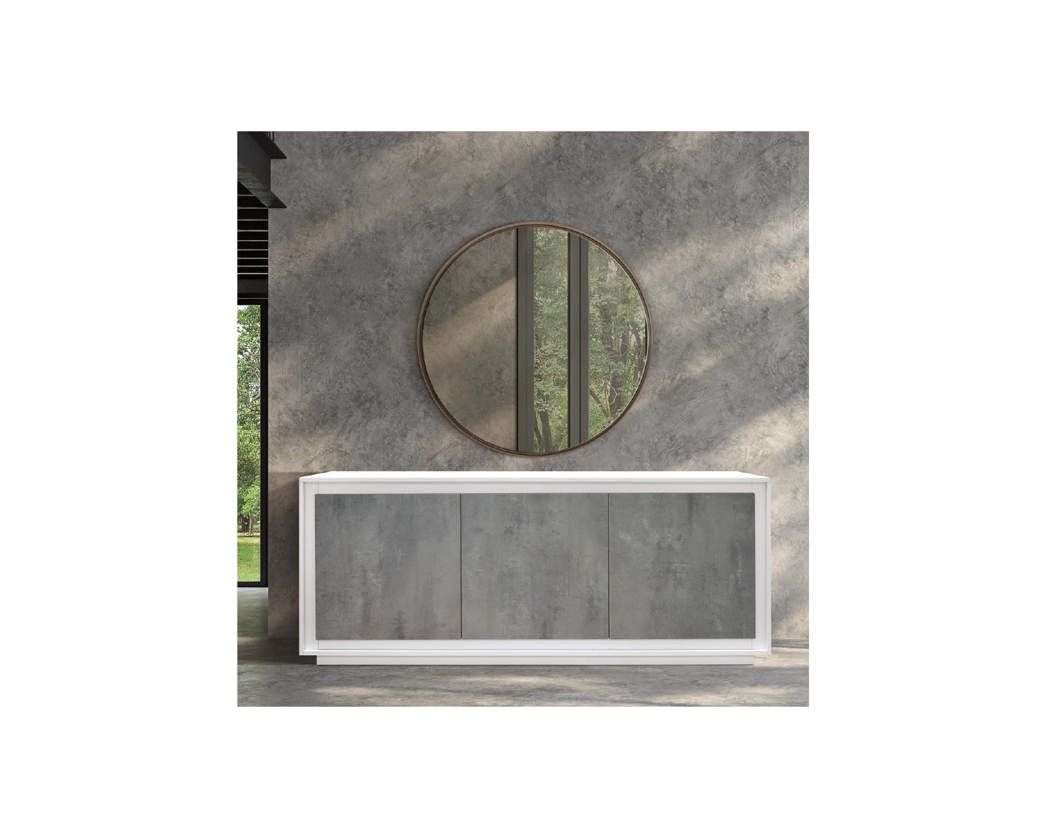 CREDENZA MADIA 3 ante ammortizzate 180x50 struttura bianco frassinato ante finitura grigio cemento