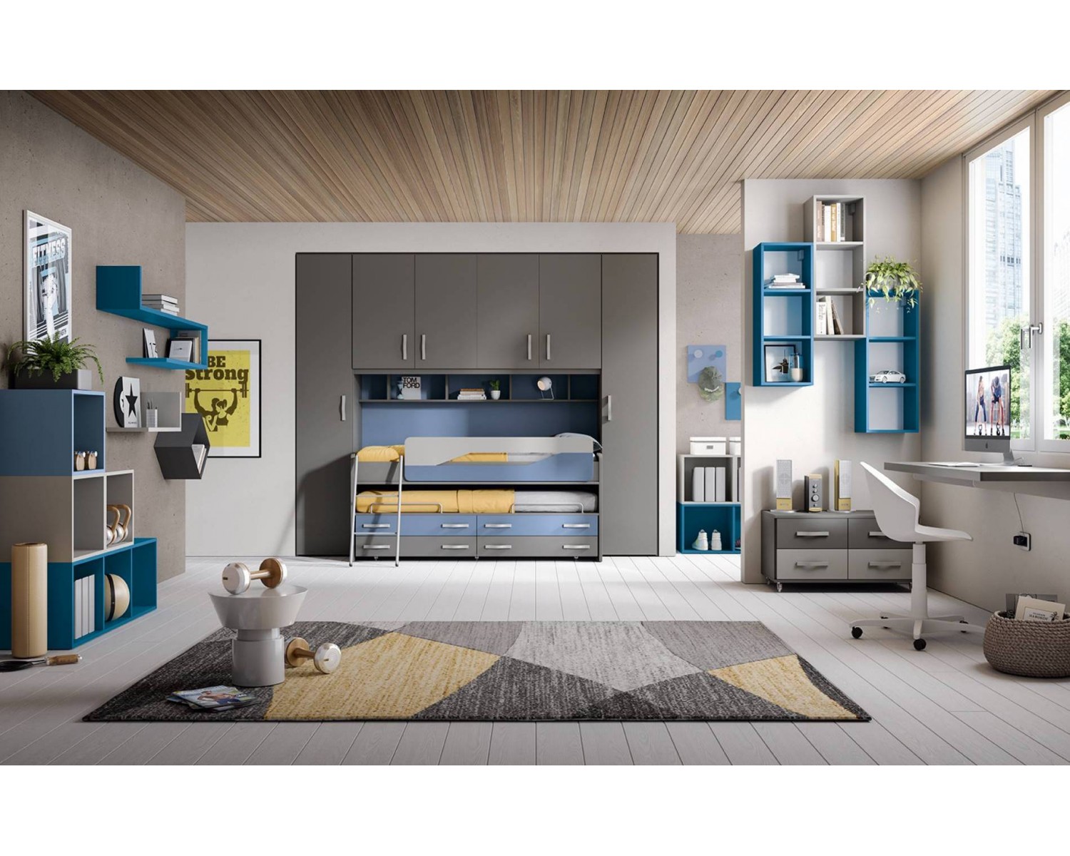 PUENTE DE CÁMARA DE COLOR BEIGE CON RECUBRIMIENTO EA NUEZ COMO FOTO COMPRESO camas sin RED y el colchón L.338 H 239 P 205