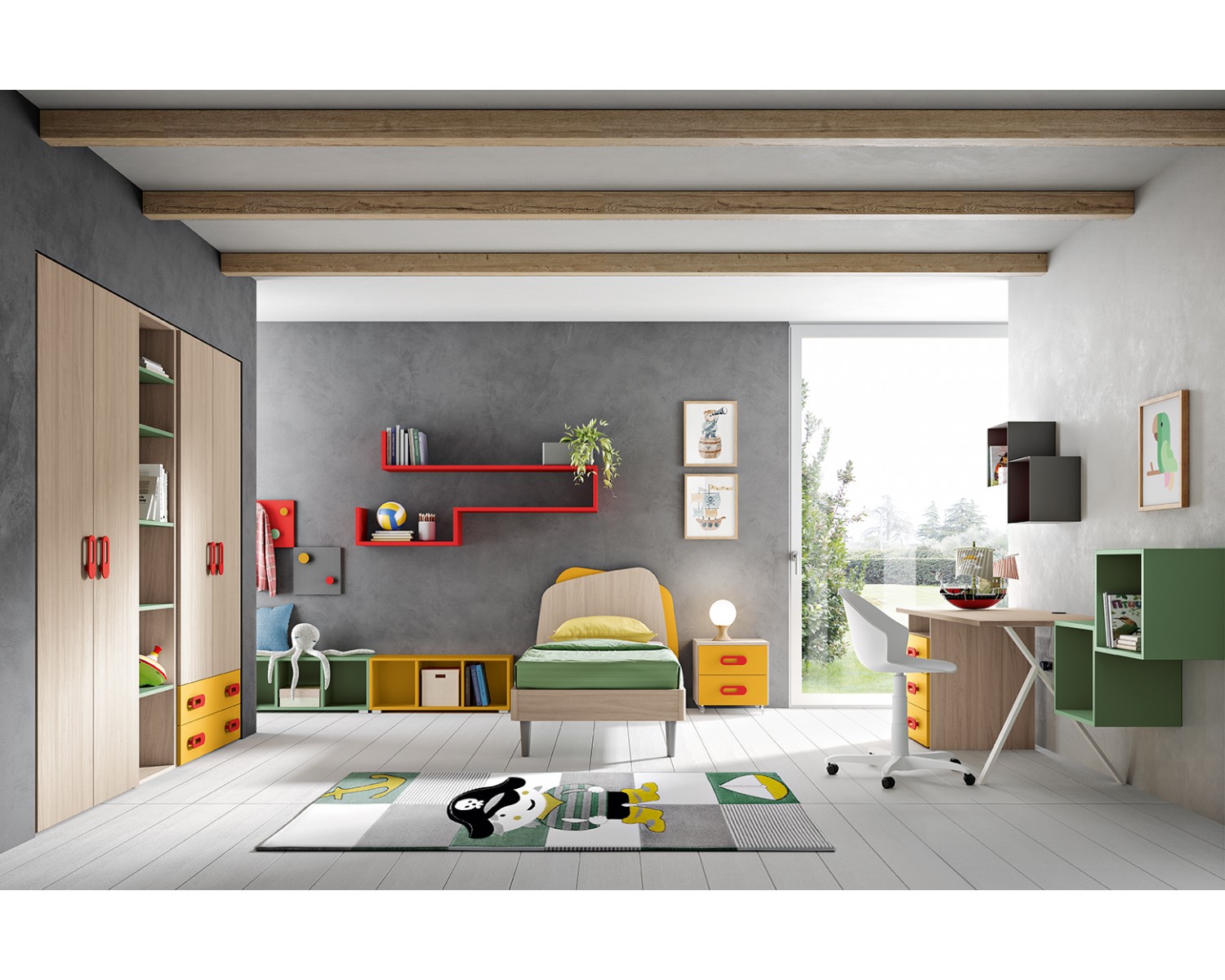 PUENTE DE CÁMARA DE COLOR BEIGE CON RECUBRIMIENTO EA NUEZ COMO FOTO COMPRESO camas sin RED y el colchón L.338 H 239 P 205