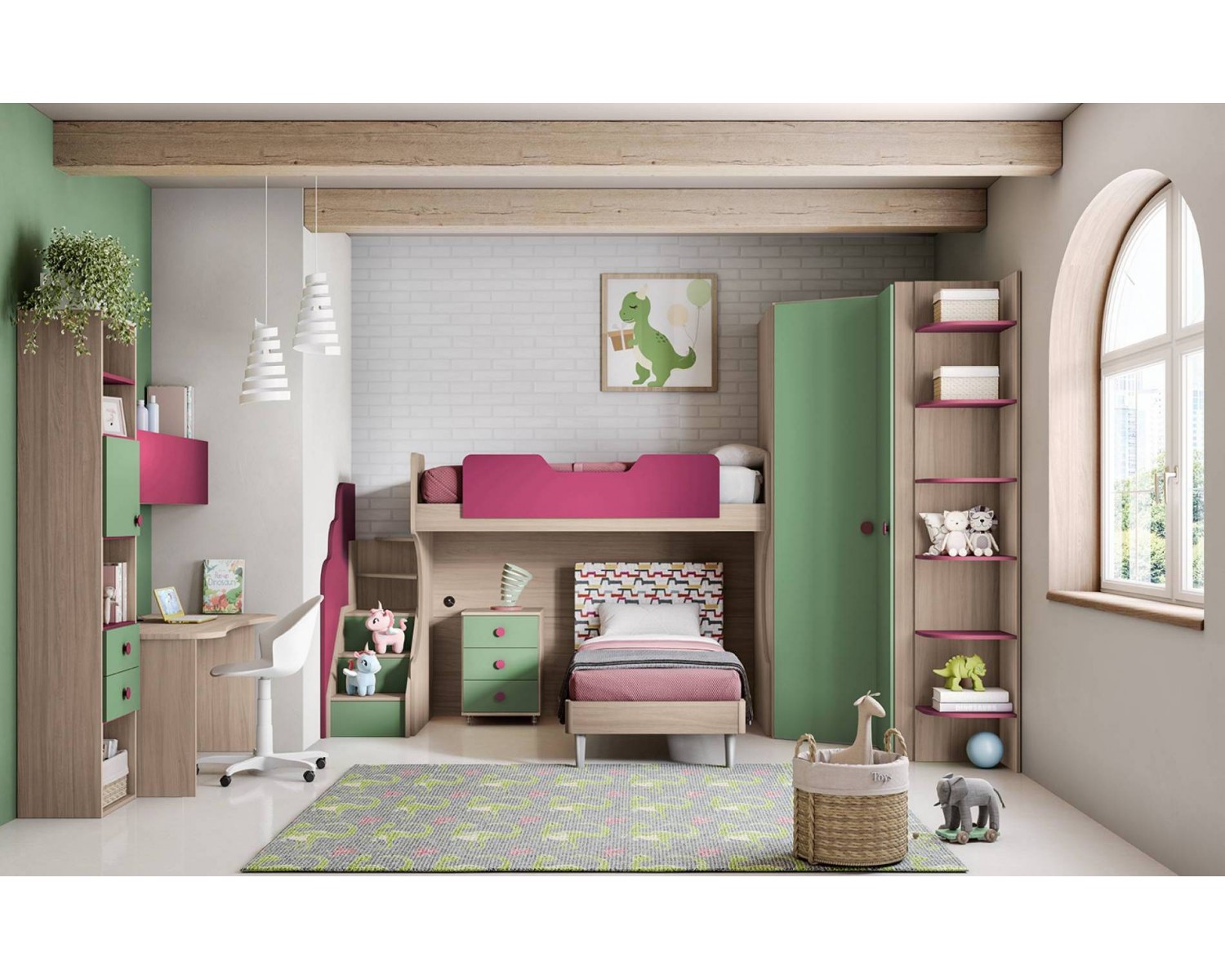 PUENTE DE CÁMARA DE COLOR BEIGE CON RECUBRIMIENTO EA NUEZ COMO FOTO COMPRESO camas sin RED y el colchón L.338 H 239 P 205