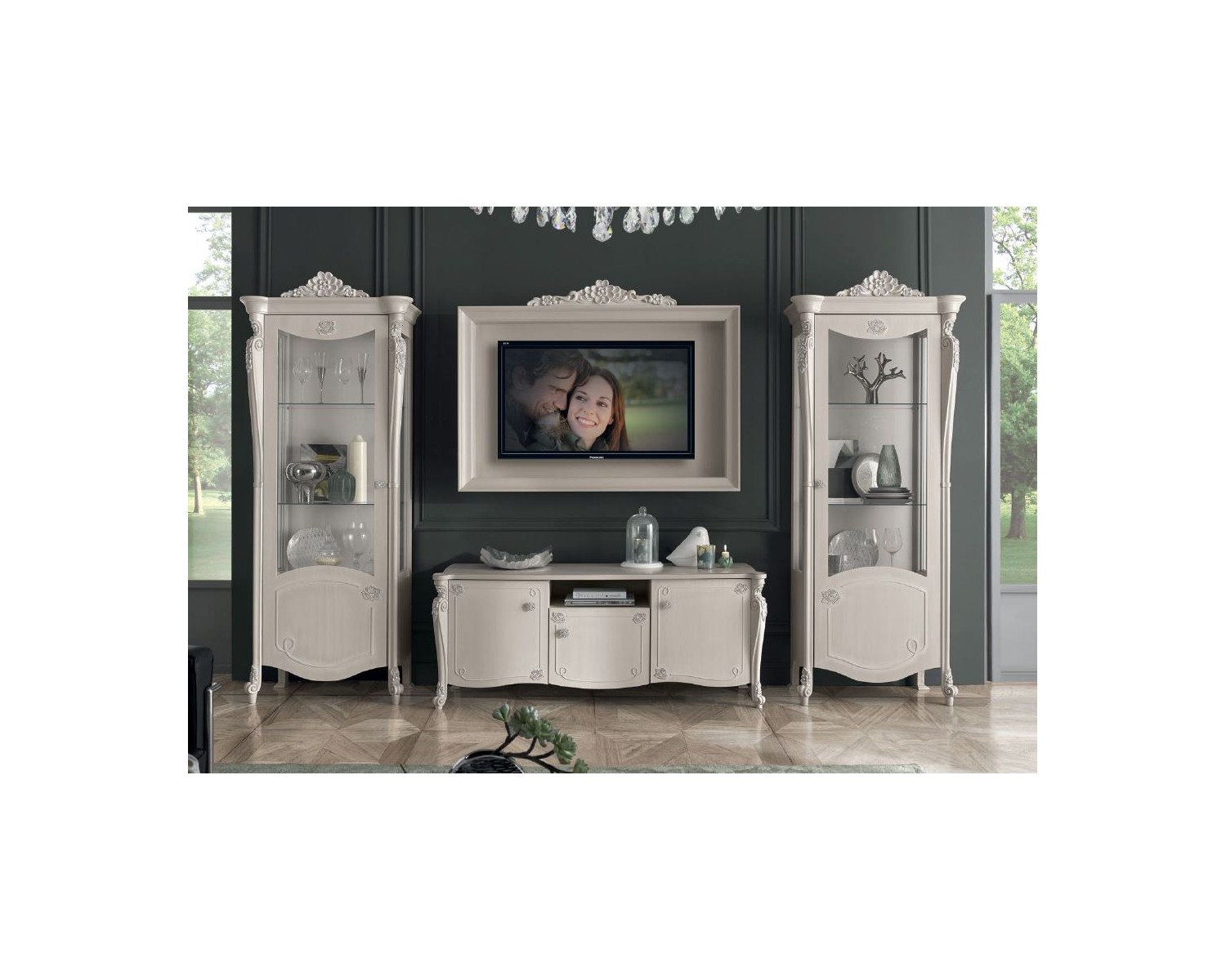 vetrina singola apertura dx/sx legno massello con intarsio