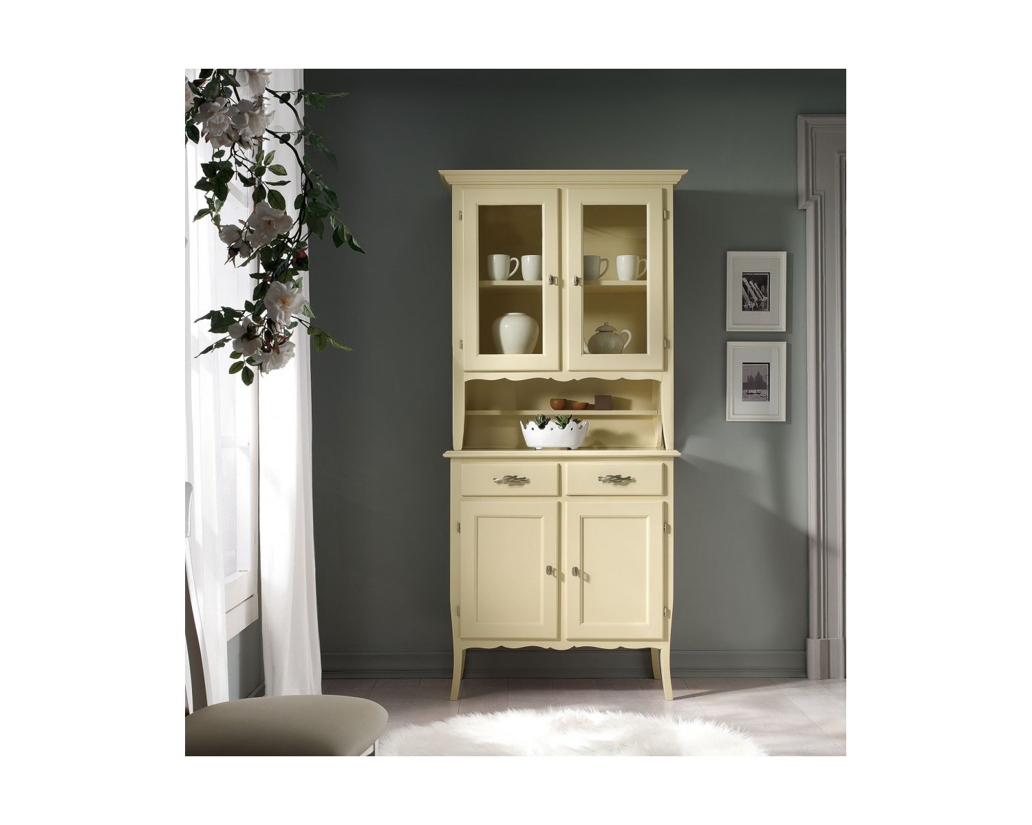 VETRINA 2 PORTE IN LEGNO LACCATO AVORIO MISURE L.98.P.51 H.213