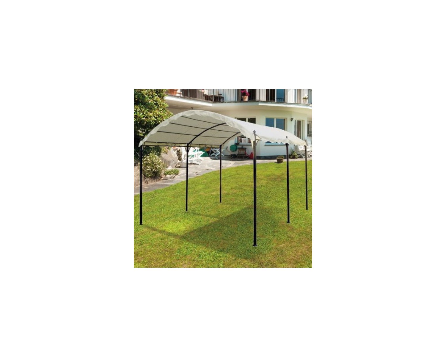 Gazebo con struttura in metallo verniciato completo di telo di copertura in poliestere da 1680 gr/mq. Palo a sezione quadrata 40x40 mm. Colore struttura: grigio scuro. Colore telo: naturale. Dimensione: 3x4 m - H. 2/2.50 m. Confezione scatola di cartone con istruzioni di assemblaggio. Disponibile telo di ricambio (cod. 786/24).