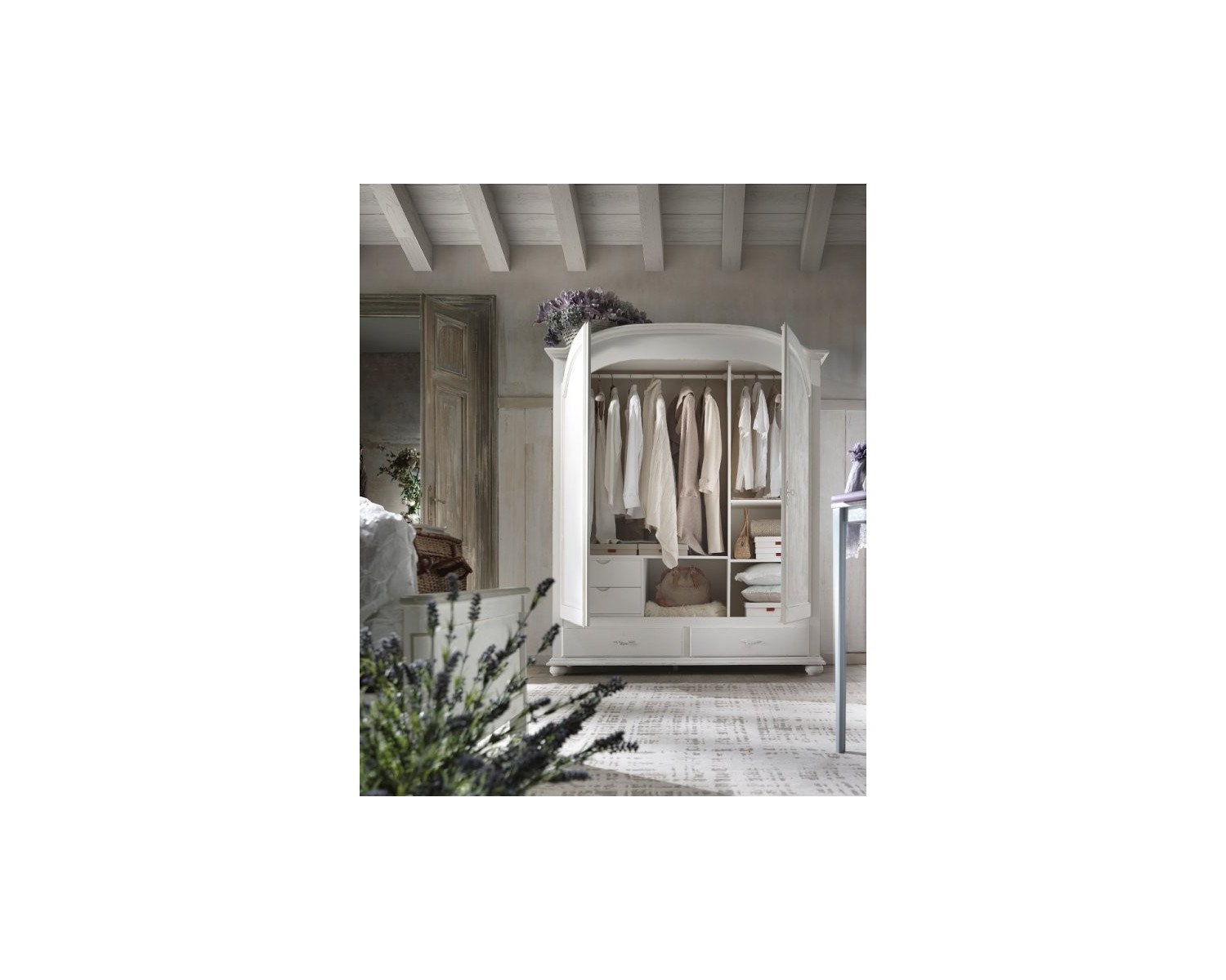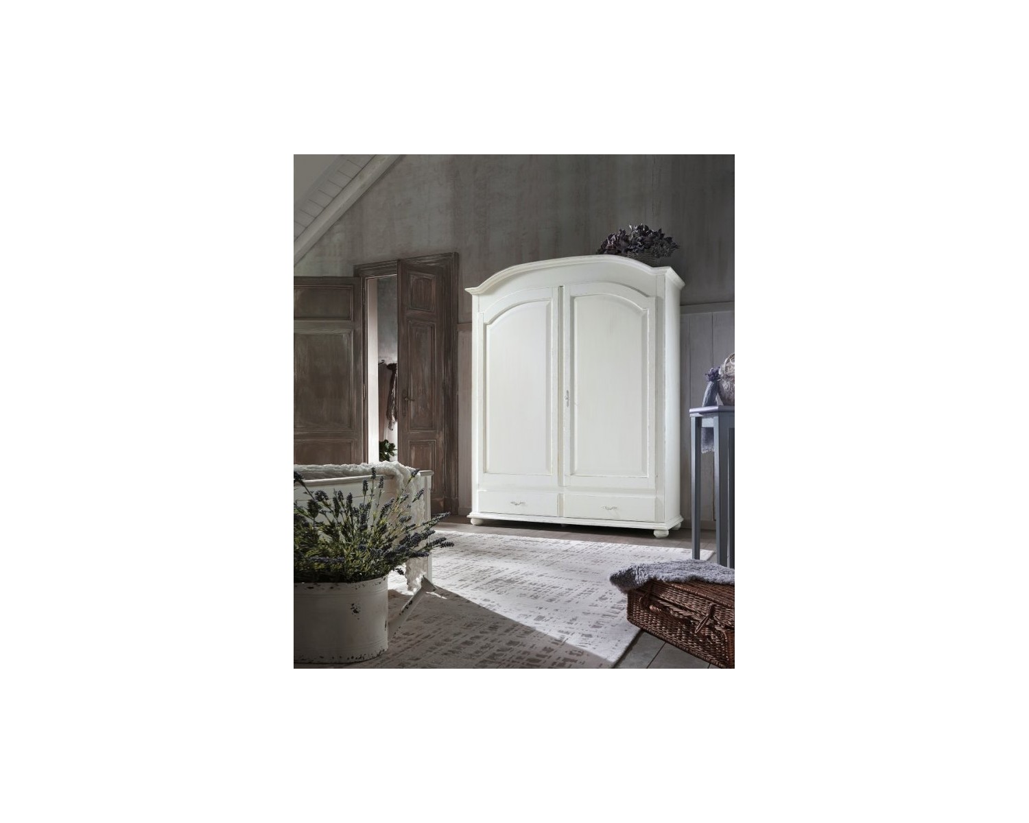 Elegante armario de 2 puertas, 2 cajones de madera acabado antiguo sólido de color blanco - se pueden producir en varios colores -