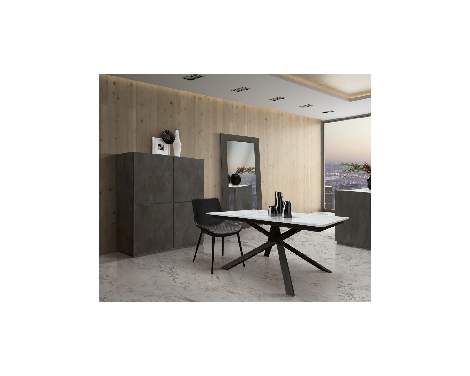 Tavolo allungabile 140x80 con 1 all. cm. 60 base metallo e piano finitura bianco statuario