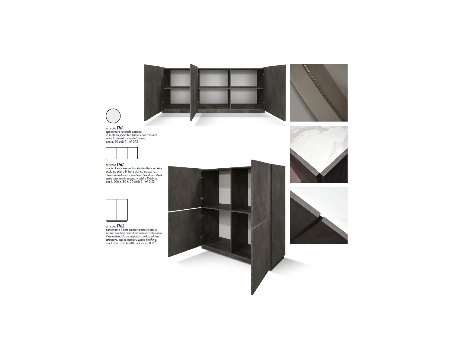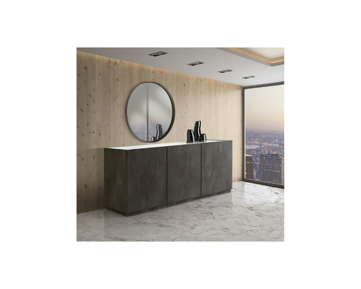 CREDENZA MADIA 3 ante ammortizzate 200x50 struttura acciaio ossidato e piano finitura bianco statuario