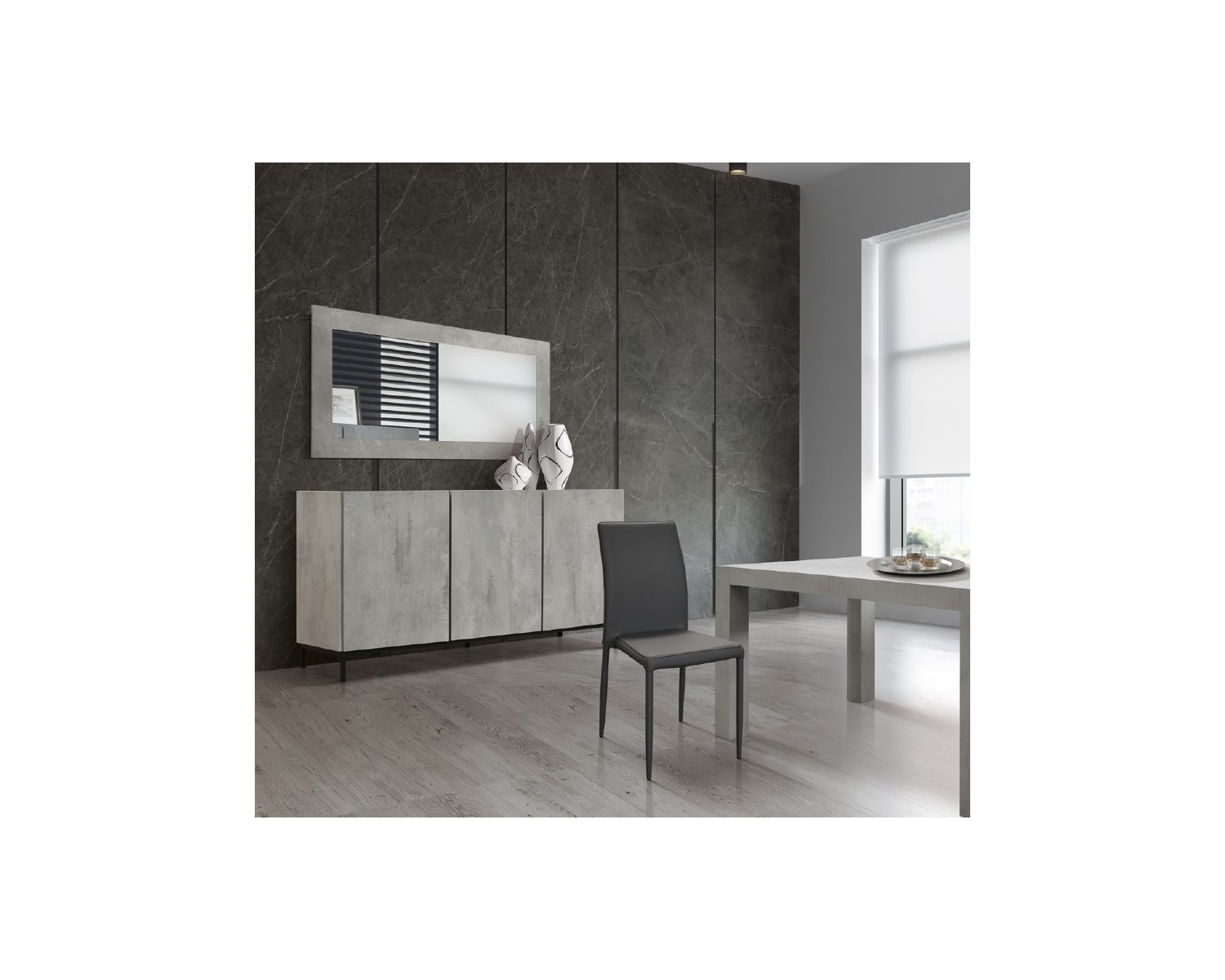 CREDENZA MADIA 3 ante ammortizzate 200x50 piedi in metallo struttura grigio cemento e piano finitura bianco statuario