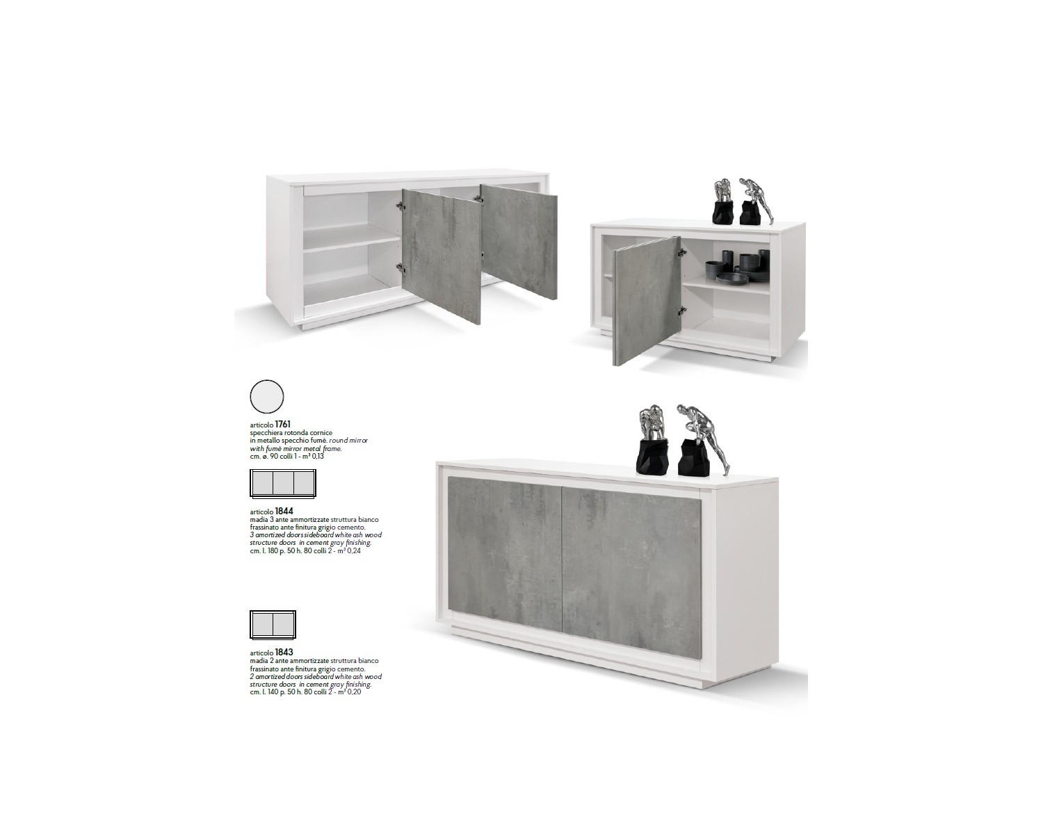 CREDENZA MADIA 2 ante ammortizzate 140x50 struttura bianco frassinato ante finitura grigio cemento