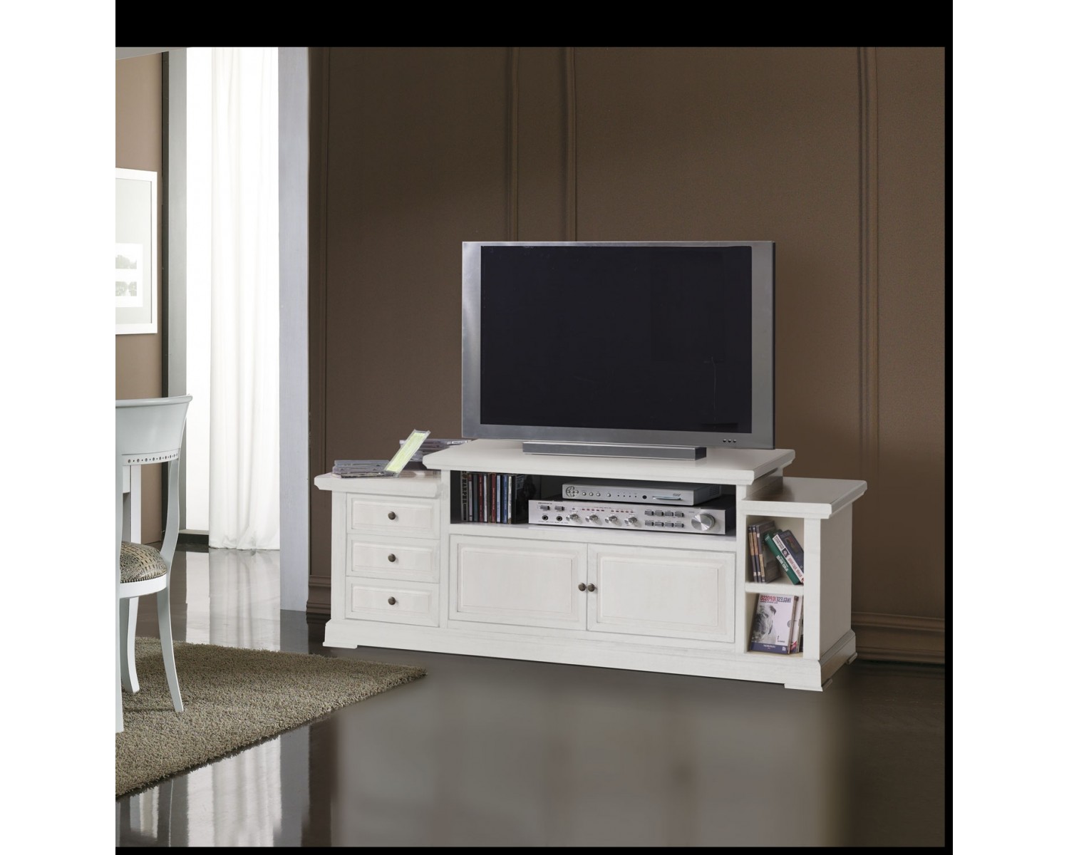 Porta Tv bugnato 2 ante, 3 cassetti L.155 P.45 H.62