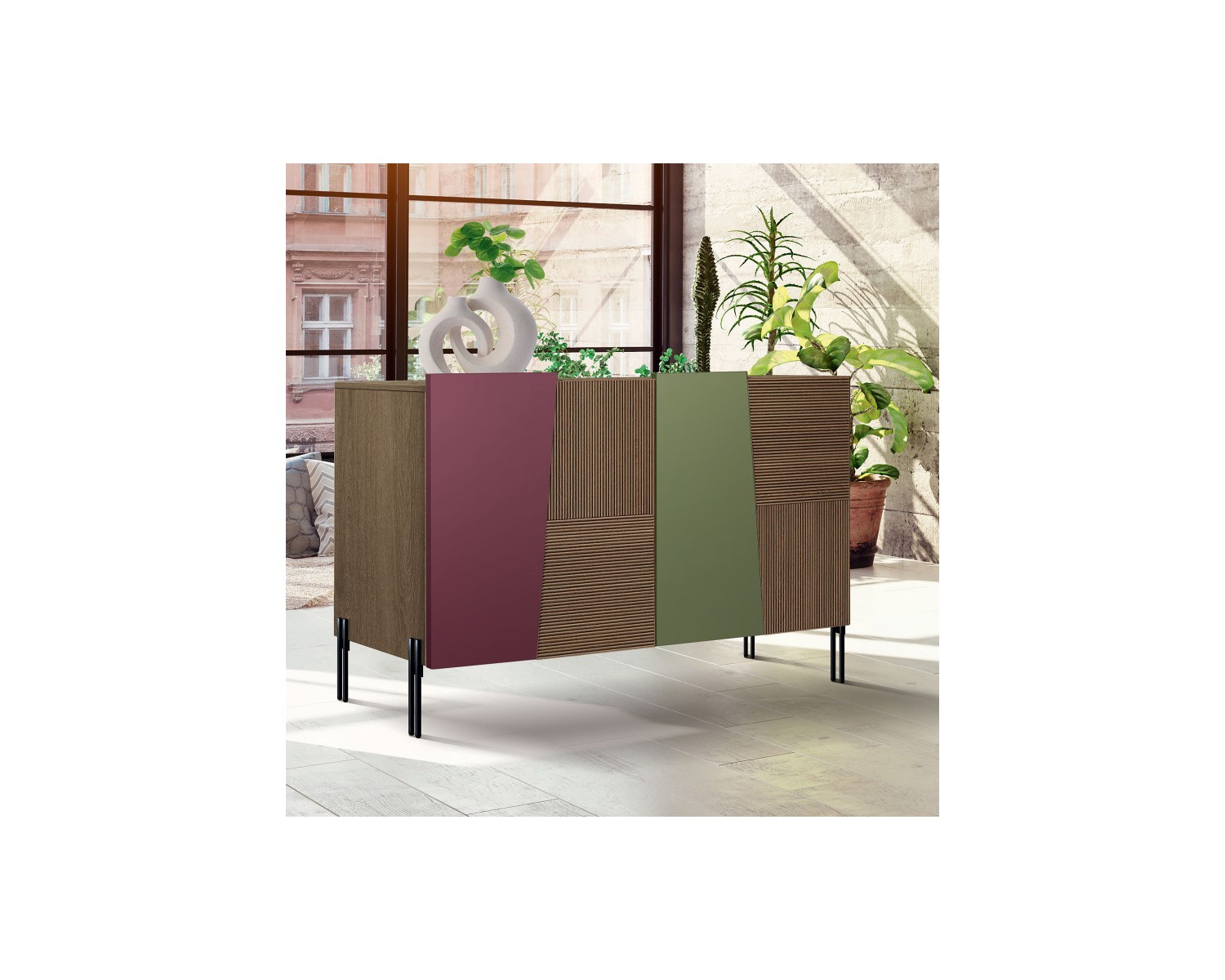 credenza contemporanea in legno di frassino vari colori con piede in ferro nero L 126 p 48 h 83