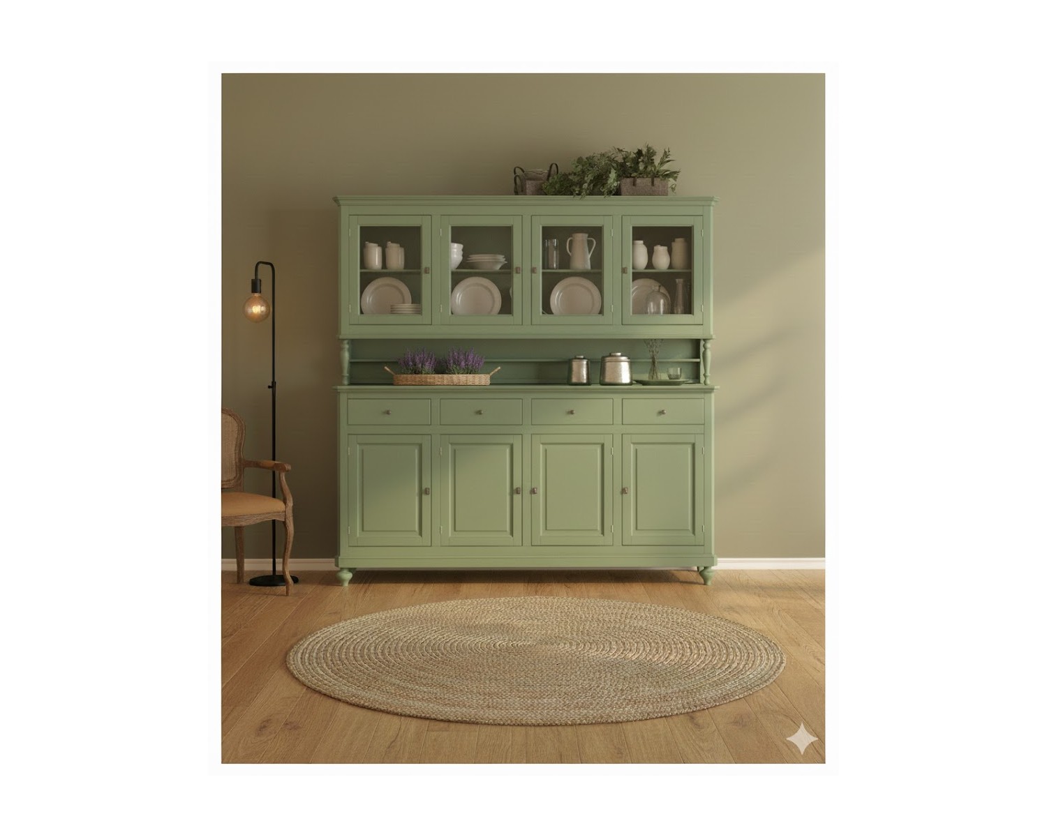 credenza vetrina country in legno massello di grande dimensione L 214
