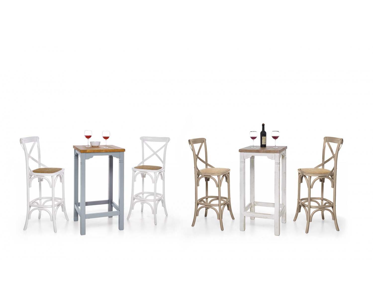 TABLA mesa alta FIR MADERA CON AZUL GRIS COLOR MIEL PIANO