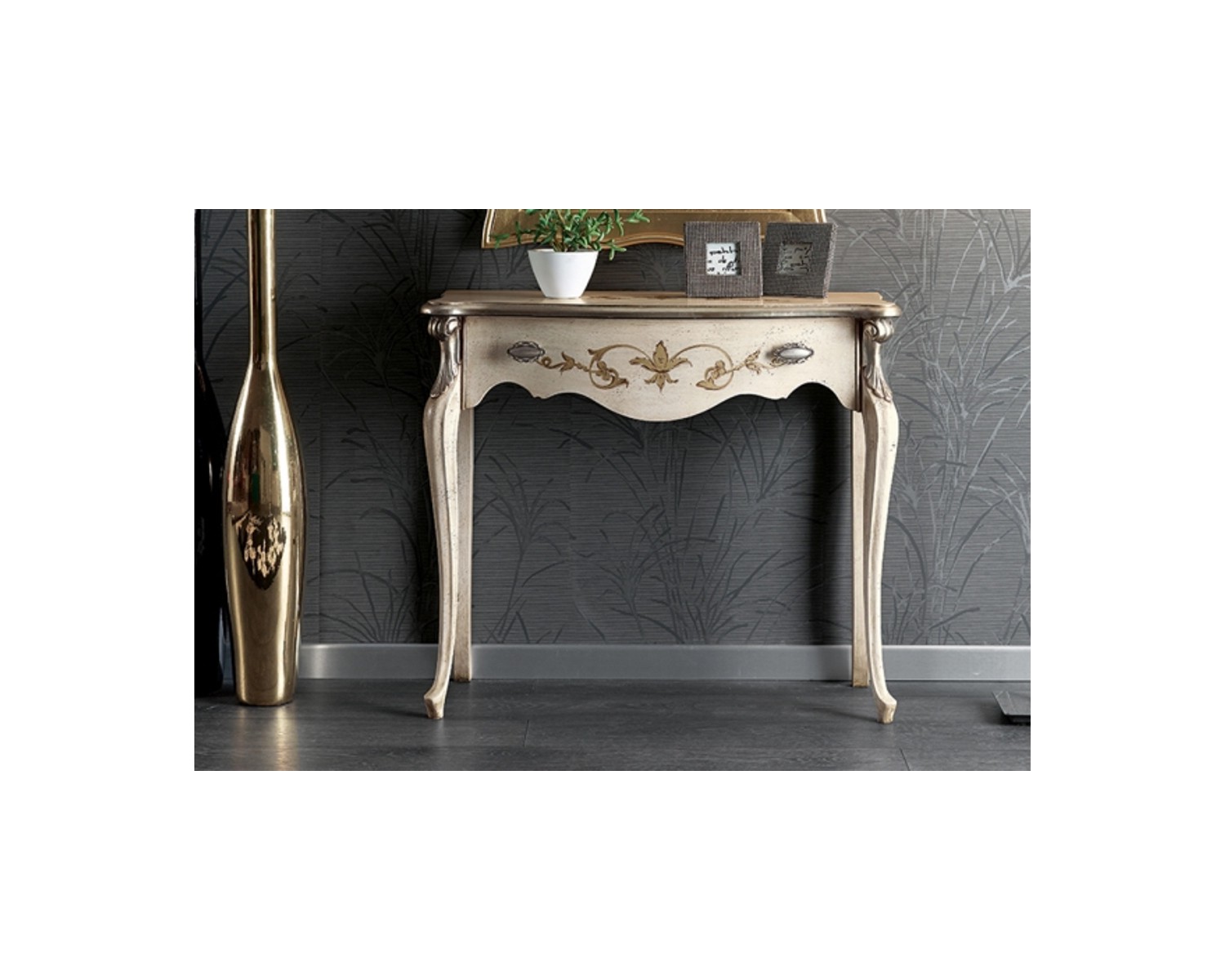 CONSOLA 1 cajón de madera decorados con INTARSIO