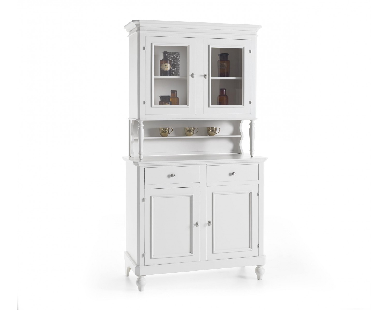 CREDENZA BASE + ALZATA L 160 P 50 H 221 VETRINA IN LEGNO MASSELLO COL BIANCO