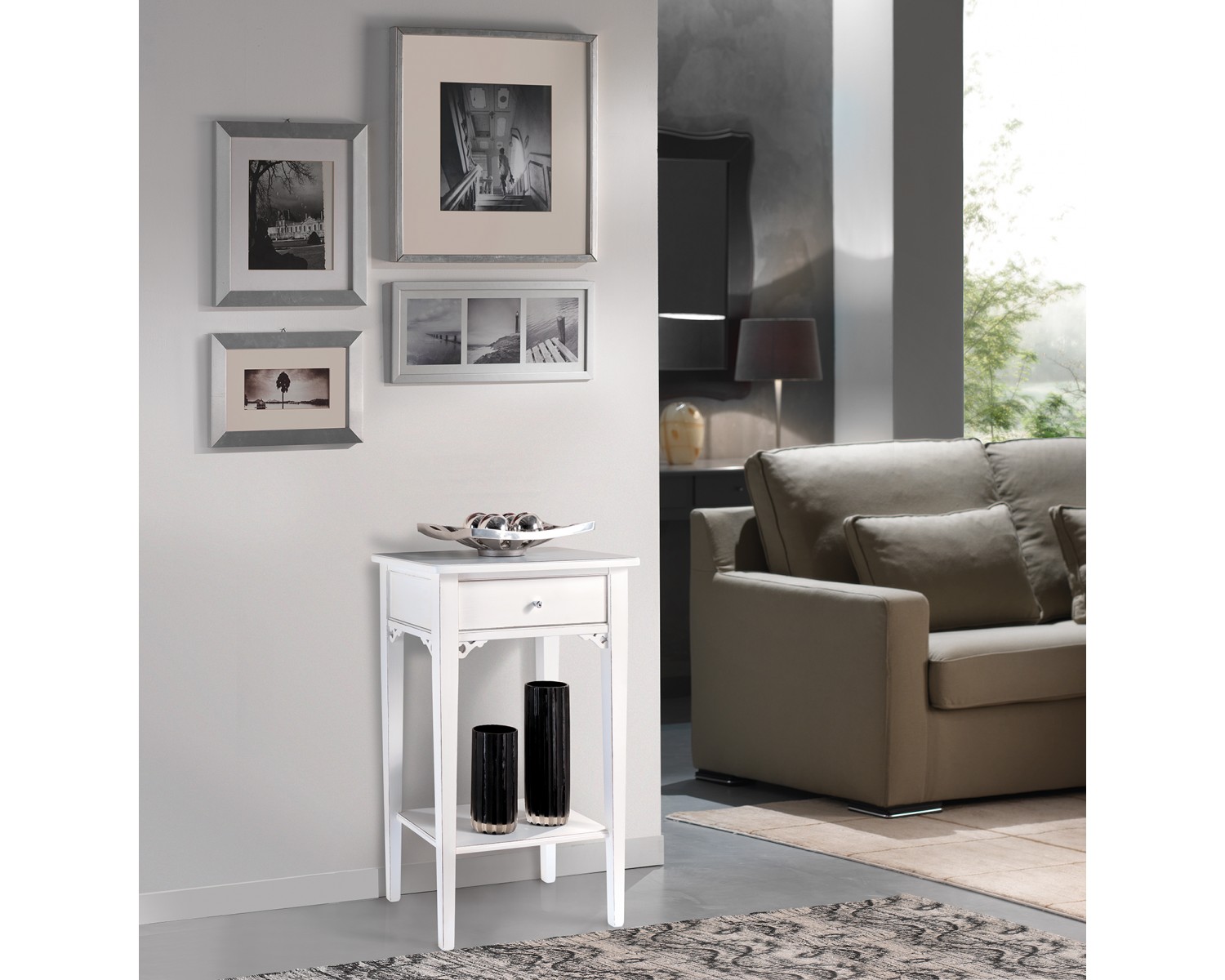CONSOLA 1 cajón lacado blanco MADERA entrada de la tabla TABLA VENETO