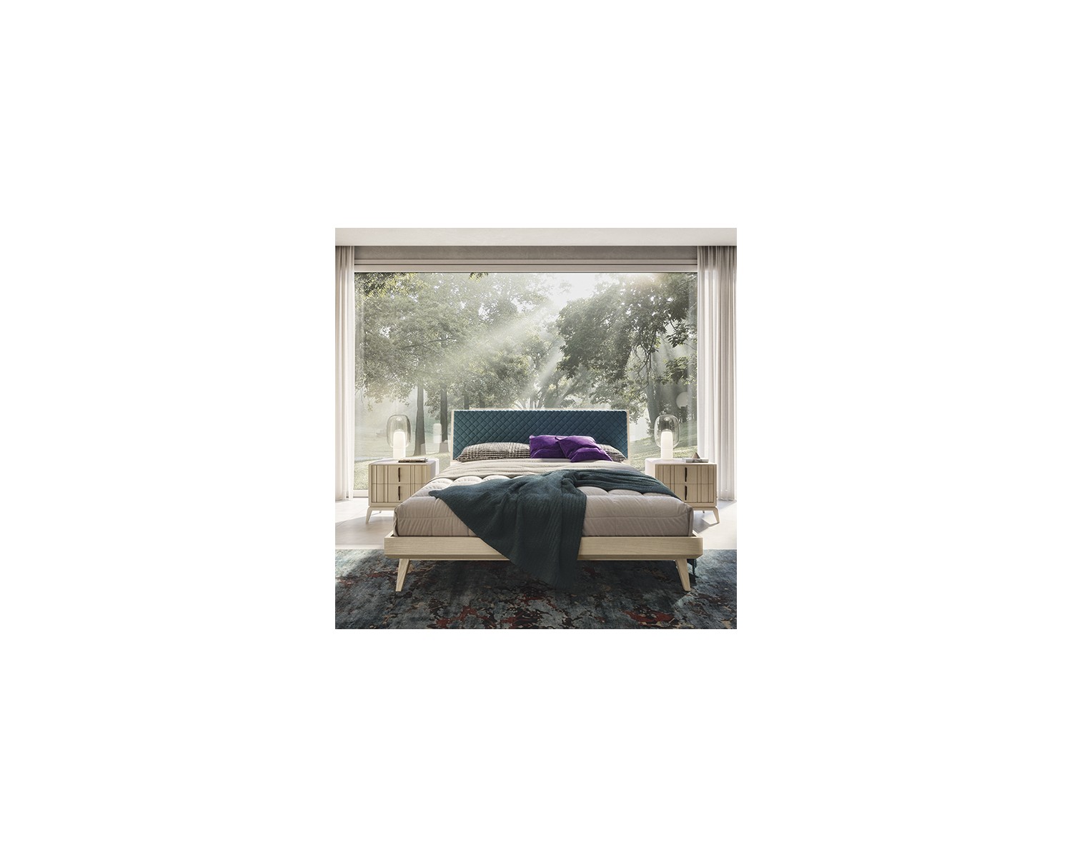 Letto con testata imbottita blu (rete 180x200 esclusa)