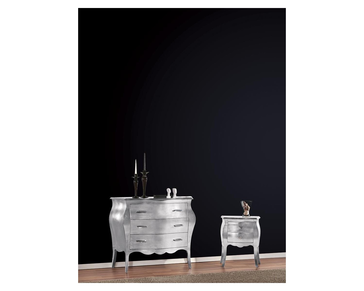 Beau 3 avec des tiroirs en bois massif arrondis et finition à la feuille d'argent agglomérat, une excellente production de produits vénitiens maison italienne, délai de livraison 15/20 jours sur l'expédition dans toute l'Italie
