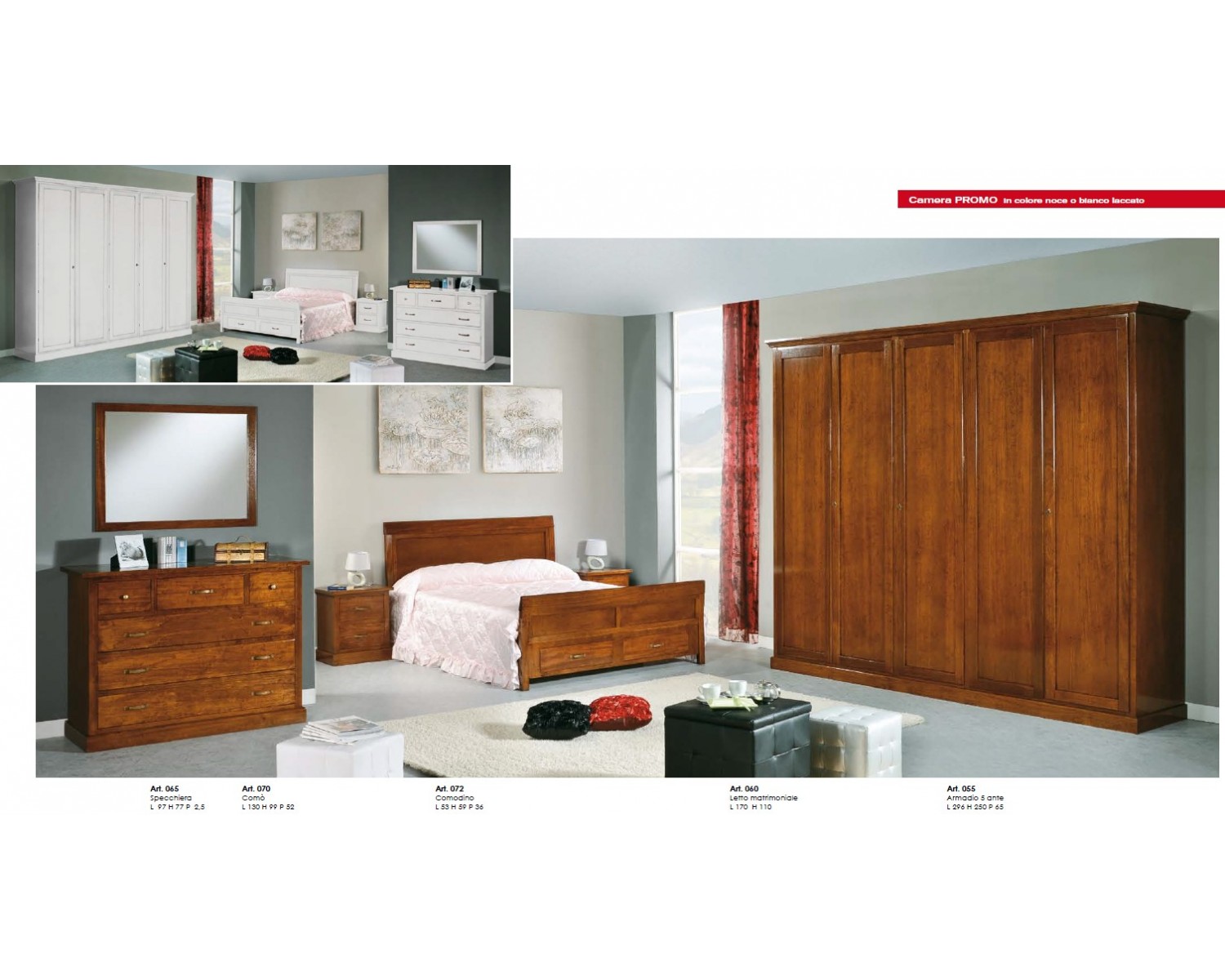 CHAMBRE COMPLETE SOLID WOOD COL Taille: LIT 170XH110 - COMODINI 53X36 H 59 - H 99 COMO 130X52 SPECCHIERA 97X2,50 H 77 - portes d'armoires 5 L 296 P 65 H 250- moment de la production 25 JOURS - fabriqué en Italie DIVERSES COULEURS EN PRODUCTION