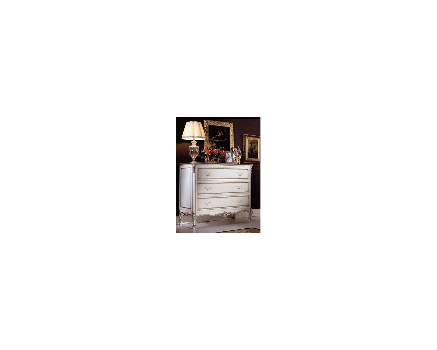 Élégante armoire CABINET avec style Louis XVI laqué blanc patiné avec des sculptures en feuilles argento.3 cassetti.Ottima qualité vénitienne, l'artisanat, le délai de livraison 15/20 jours d'expédition dans toute l'Italie