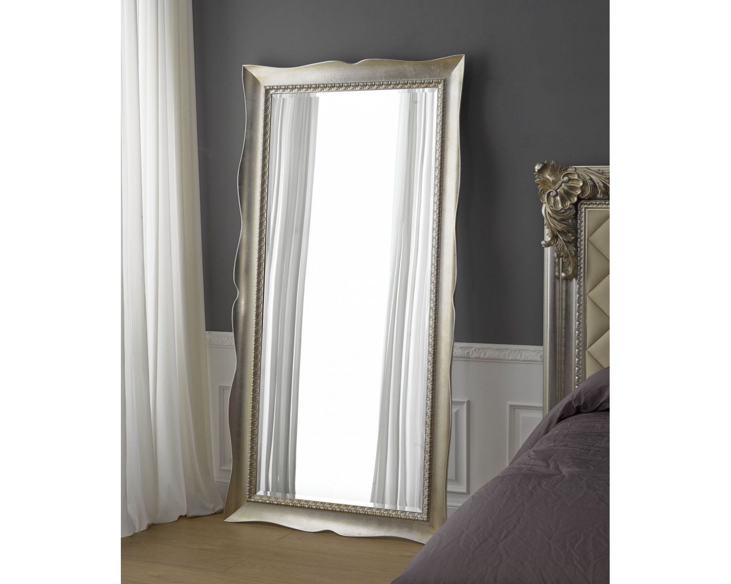 MIROIR EN BOIS CRAFT MADE IN ITALY - réversible - produit artisanal vénitien - Temps de production 20 jours - Livraison avec l'emballage renforcé COULEUR assurée AS PHOTO - couleurs différentes dans la production: GOLD - LEAF ARGENT - IVORY - BLANC - NOIR - DEUX TONS - DIMENSION réversible CM 90 X 180 X 7