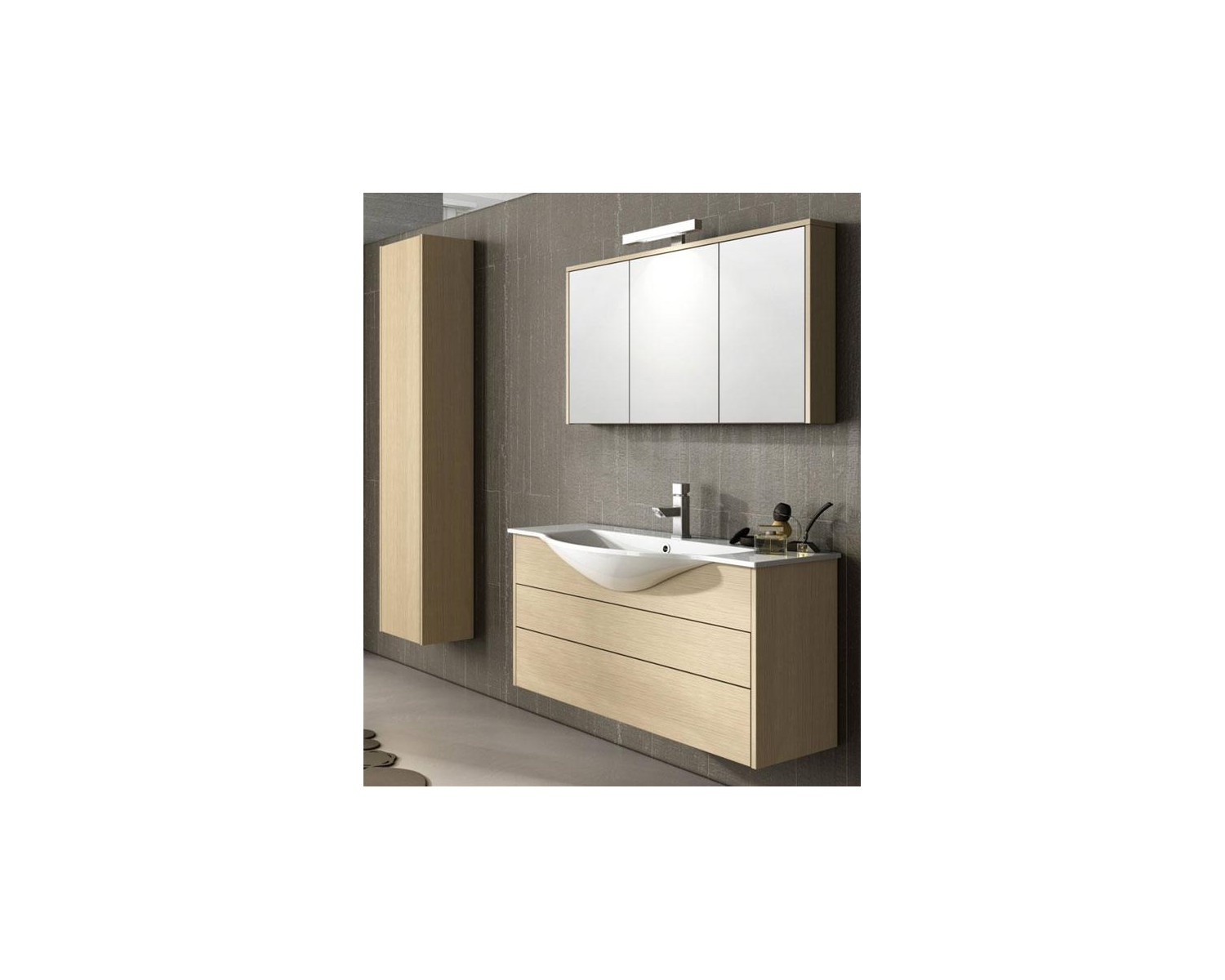 � Mobile base cm 50x101x34 � Lavabo mineral cm 103x47 � � Specchio cont.cm 54x100 � Lampada alogena o LED � Colonna Idea cm 162x34x25 apertura a pressione �