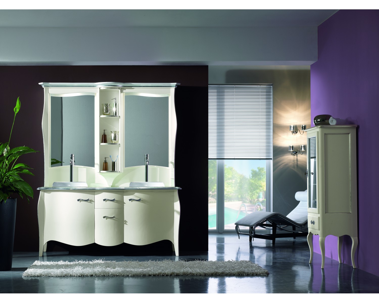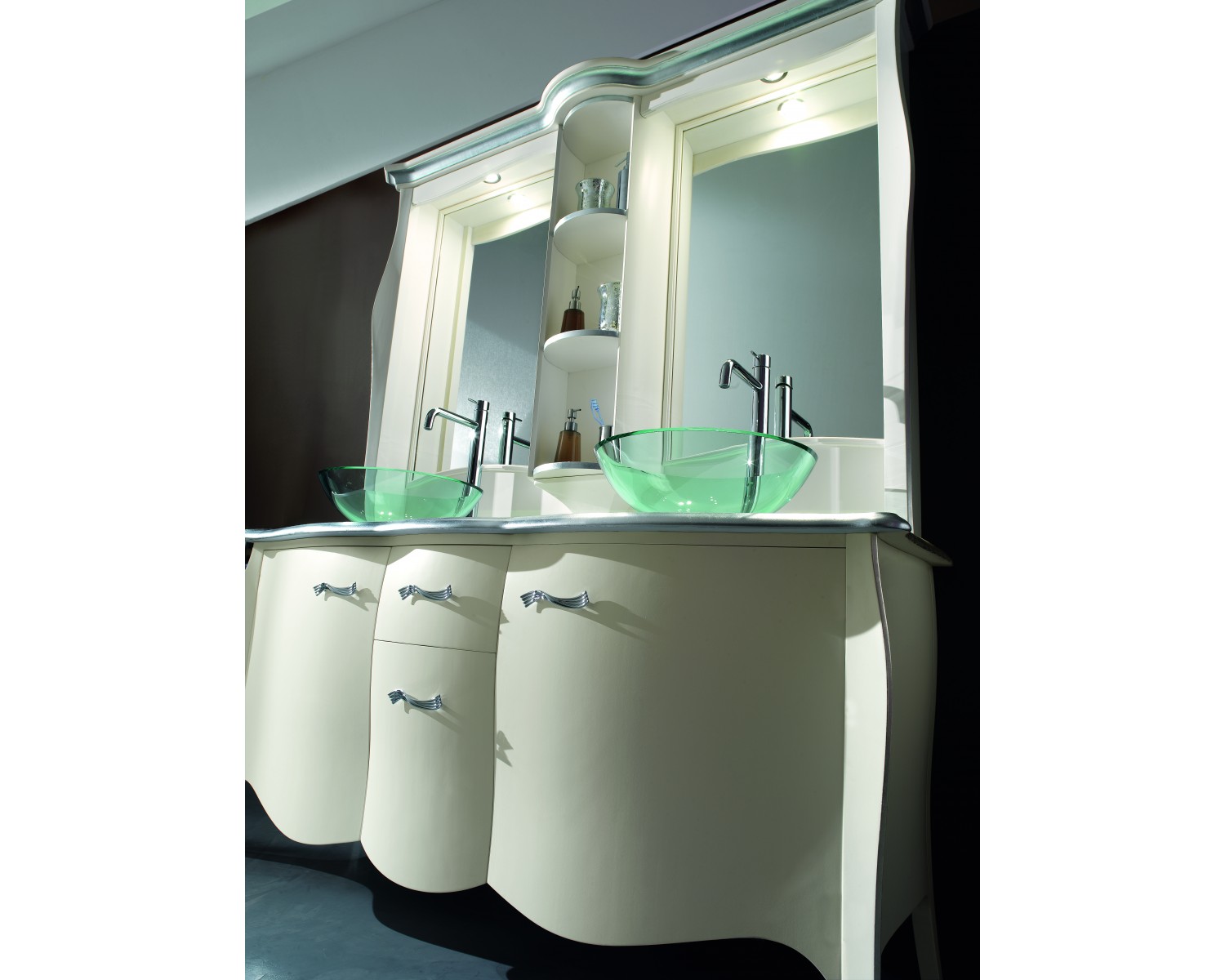 MOBILE BAGNO DOPPIO ARREDO LEGNO MASSELLO ARTIGIANALE LACCATO CON SPECCHIERA