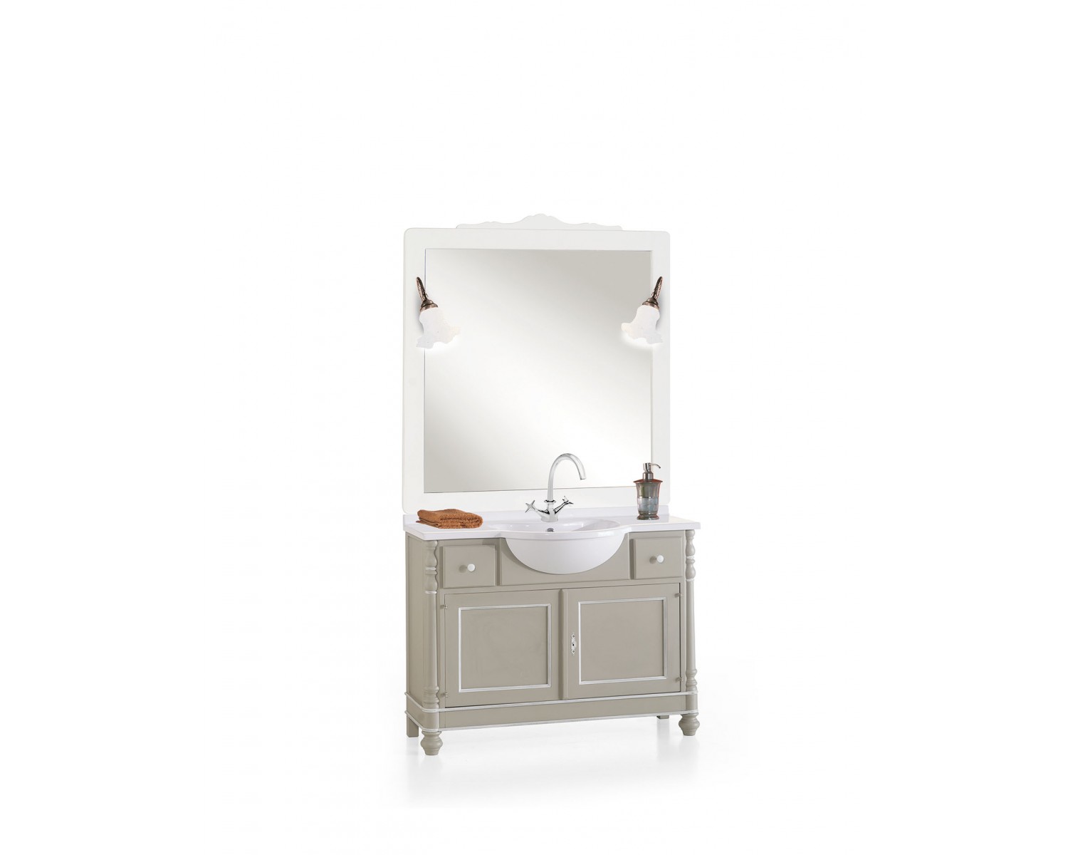 dimensione L 108 p 36/50 h 79 + 7 mineralmarmo + 117 cornice specchio