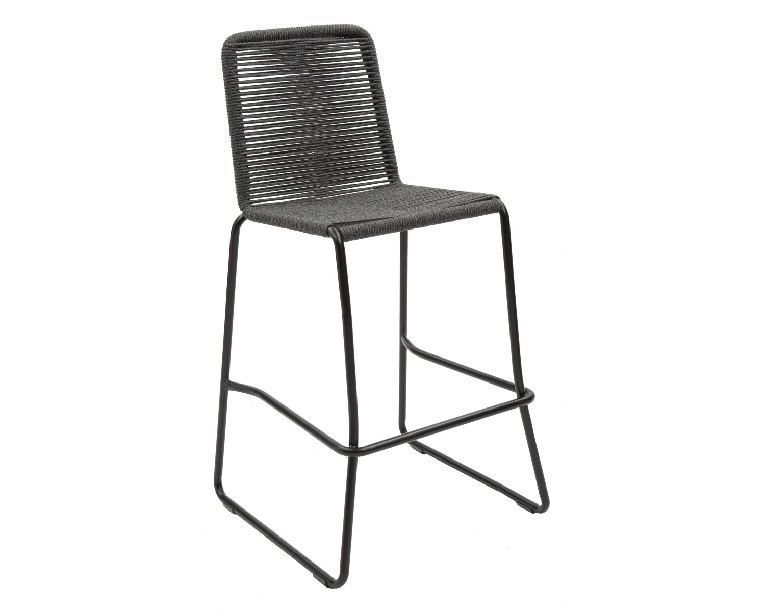 Sgabello in ferro nero con seduta in corda antracite L.57 H.106 P.59 HS.75