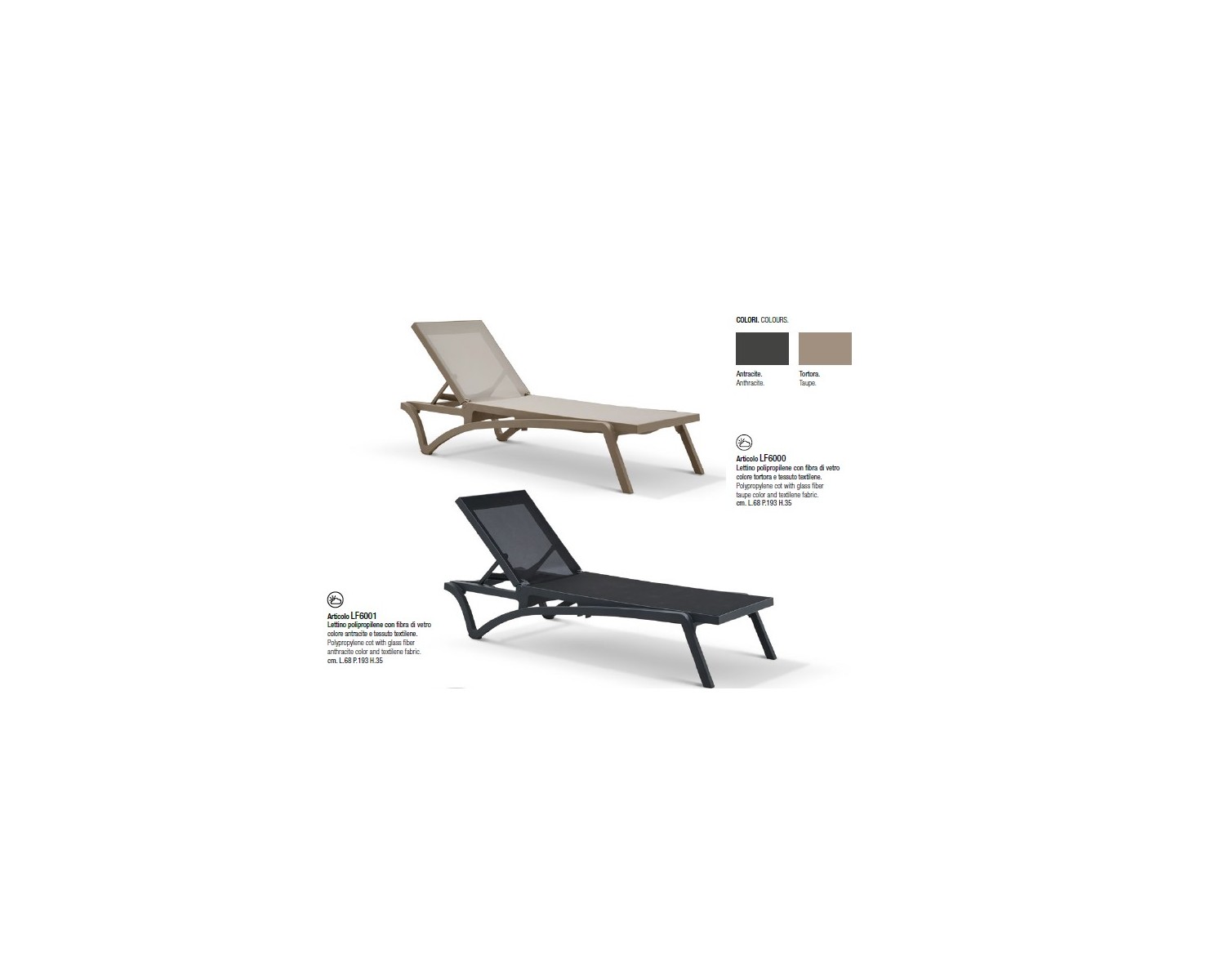 Lettino Polipropilene con fibra di vetro tortora L.68 P.193 H.35