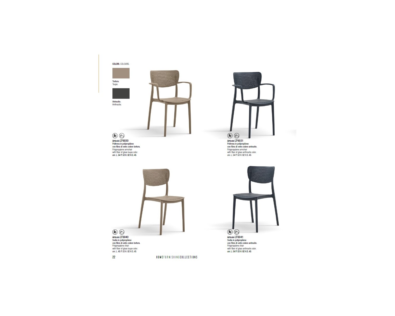 Poltrona Polipropilene con fibra di vetro tortoraL.54 H.82 P.53 HS.45