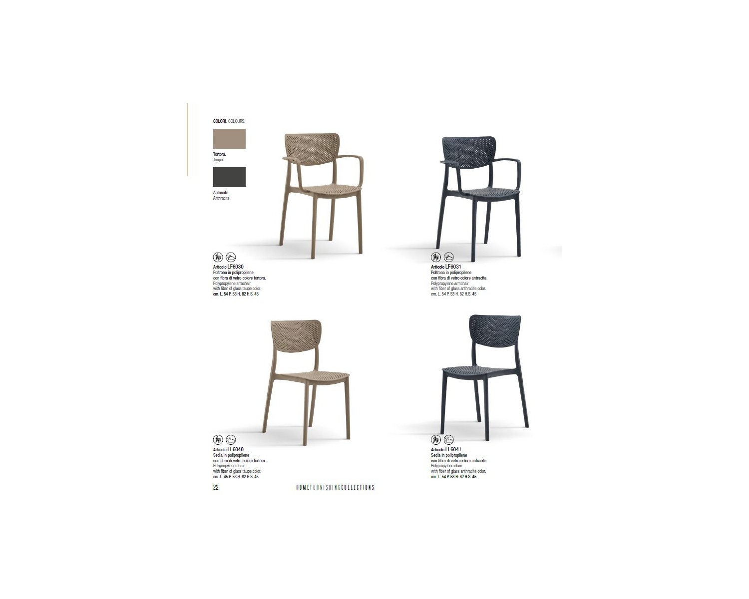 Sedia Polipropilene con fibra di vetro tortora L.45 H.82 P.53 HS.45