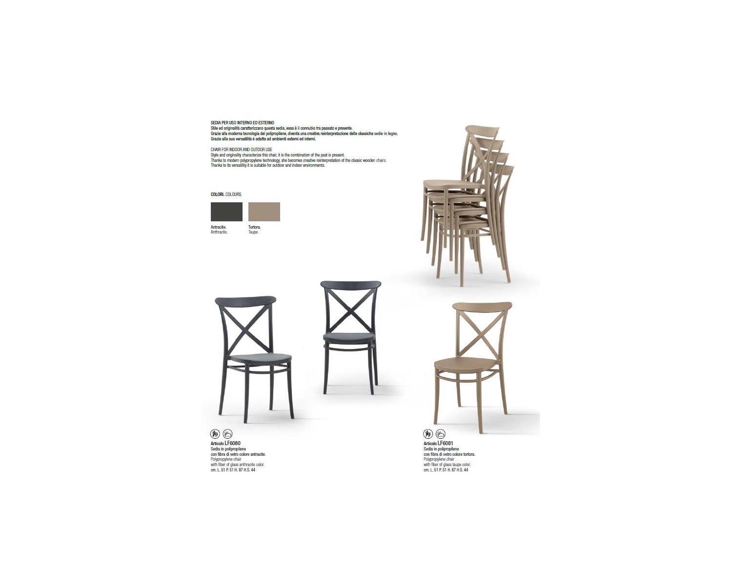 Sedia Polipropilene Tortora L.51 H.87 P.51 HS.44