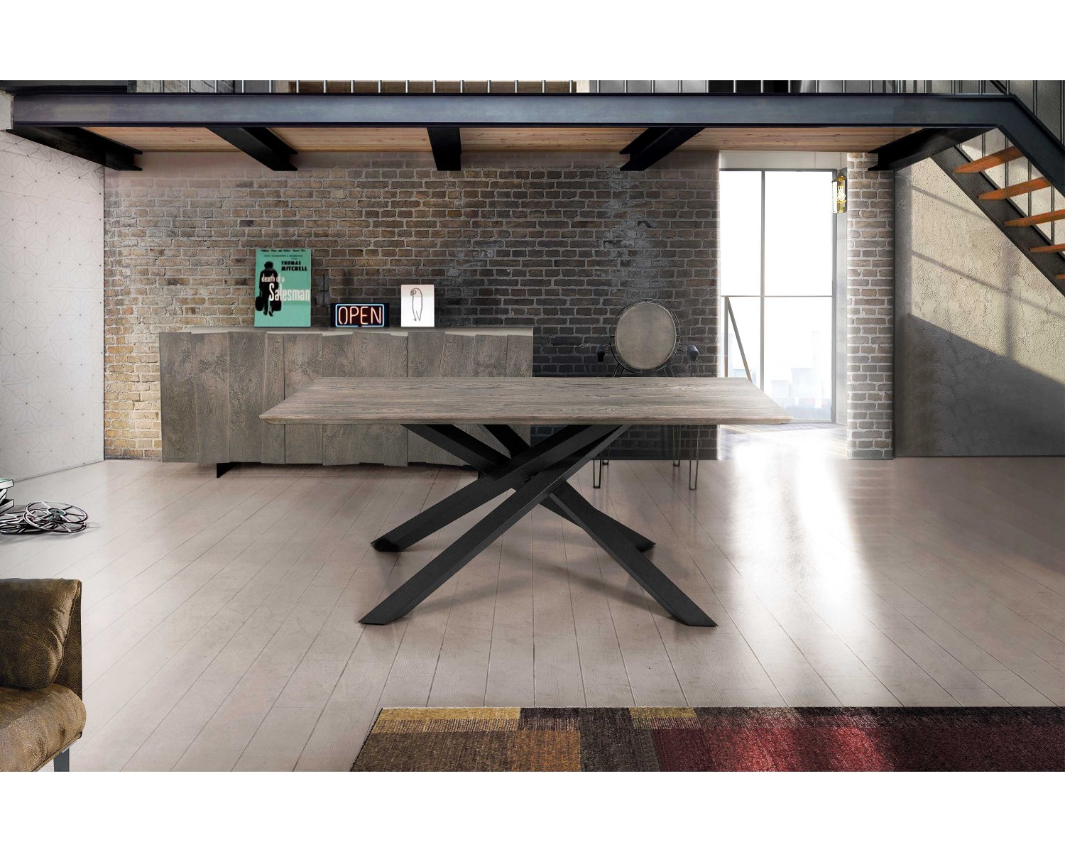 Tavolo rovere nodato finitura beton 180x90 sp.4 fisso