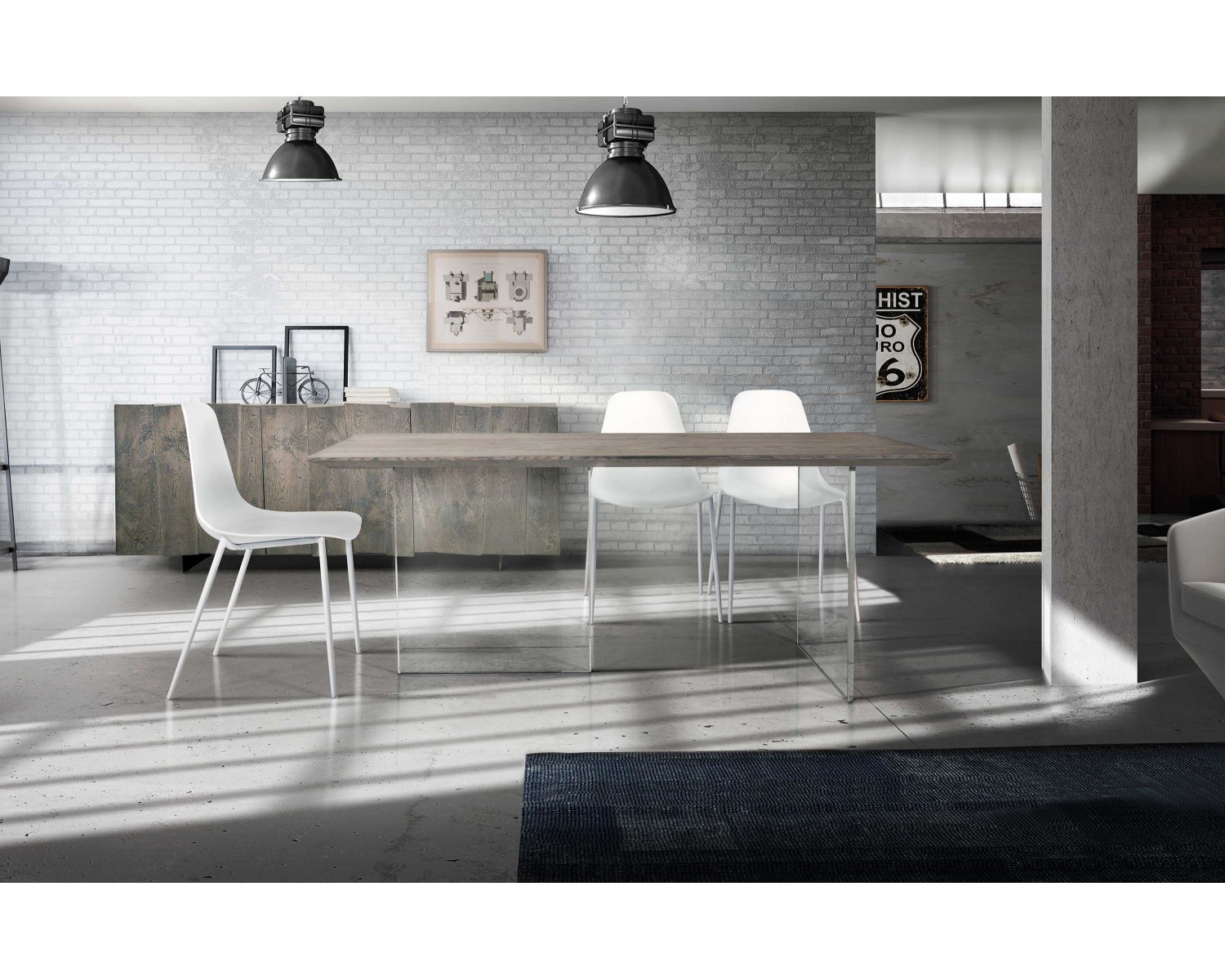 Tavolo rovere nodato finitura beton 250x100 sp.4 fisso