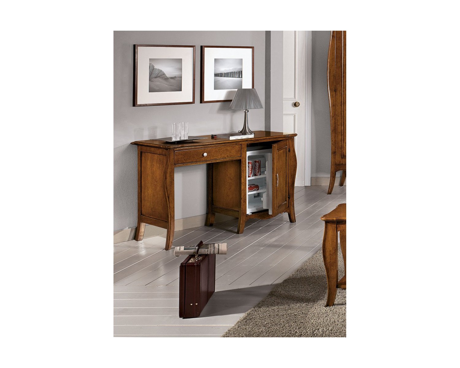 Scrittoio a 1 porta e 1 cassetto con vano porta frigorifero IN LEGNO MASSELLO