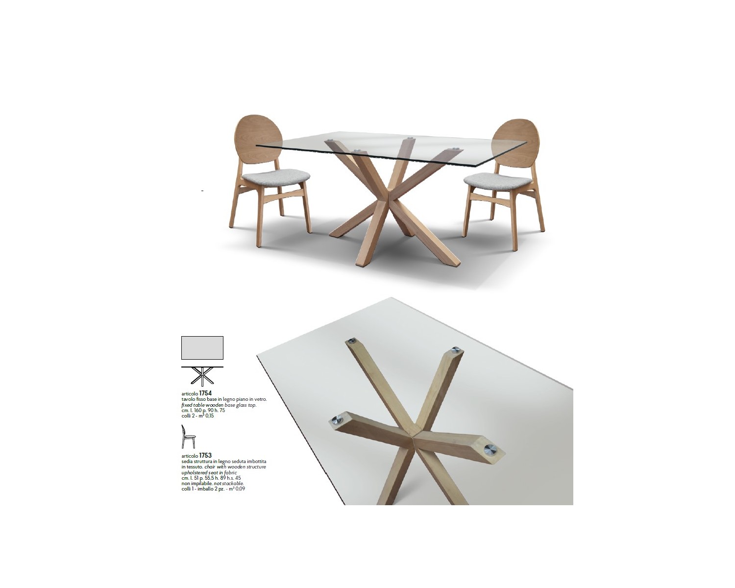 Tavolo fisso 160x90 base in legno e piano in vetro