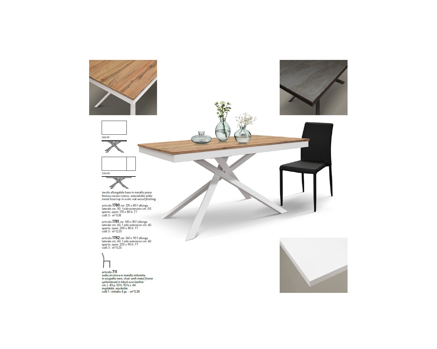 Tavolo allungabile 120x80 con 1 all. cm. 40 base metallo e piano finitura rovere rustico