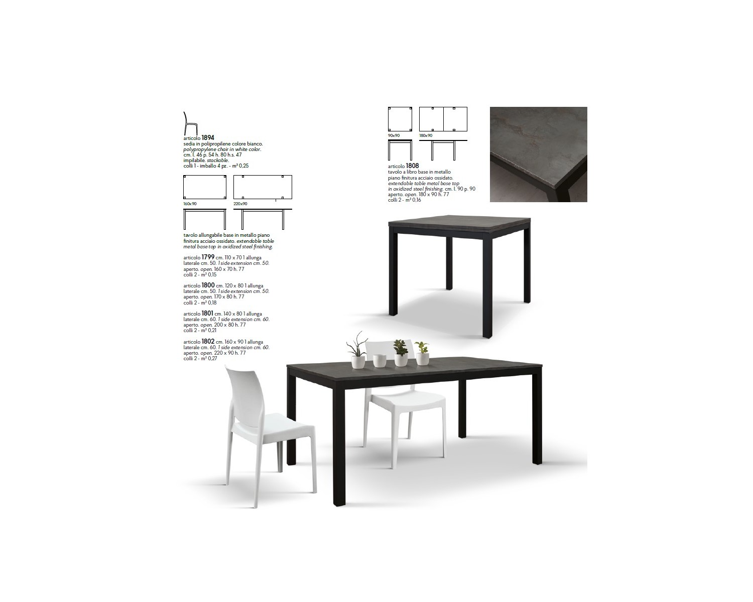 Tavolo allungabile 120x80 con 1 all. cm. 50 base metallo piano finitura acciaio ossidato