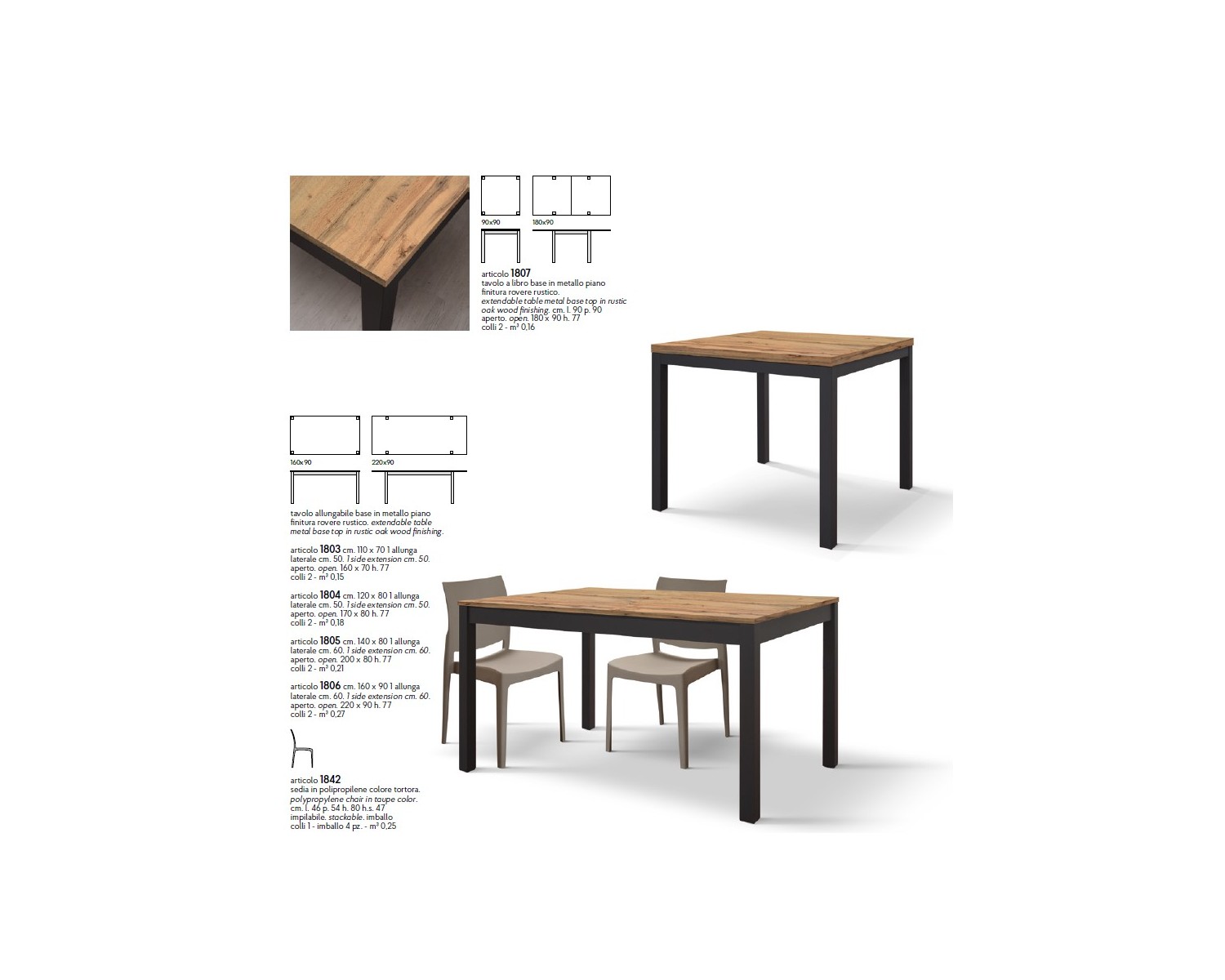 Tavolo allungabile 160x90 con 1 all. cm. 60 base metallo piano finitura rovere rustico