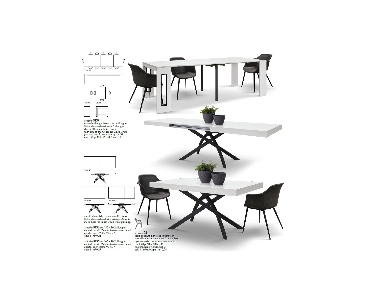 Consolle allungabile 90x45 con 5 all. cm. 50 finitura bianco frassinato
