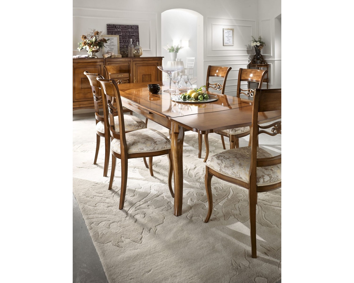 tavolo intarsio iris 110x100 all gamba provenzale - legno - 2 all laterali cm 40 apero 190x100