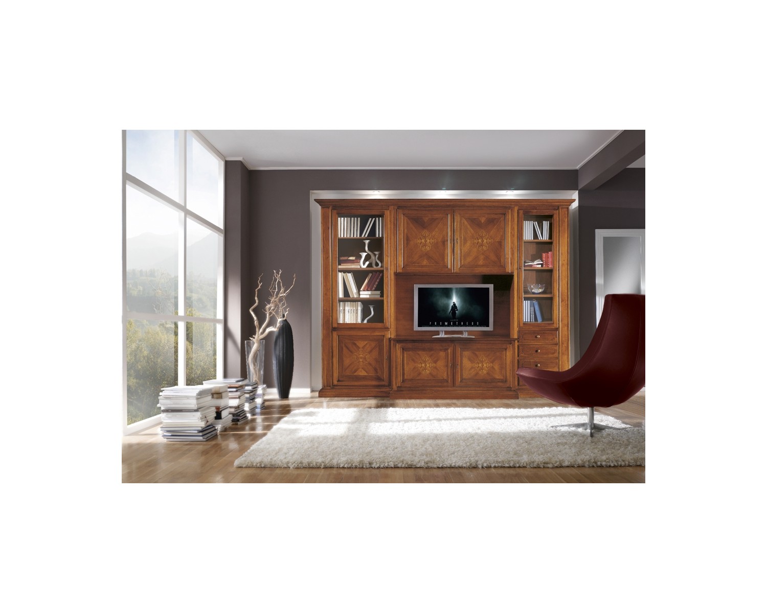 PARETE LIBRERIA SOGGIORNO LEGNO MASSELLO INTARSIATO