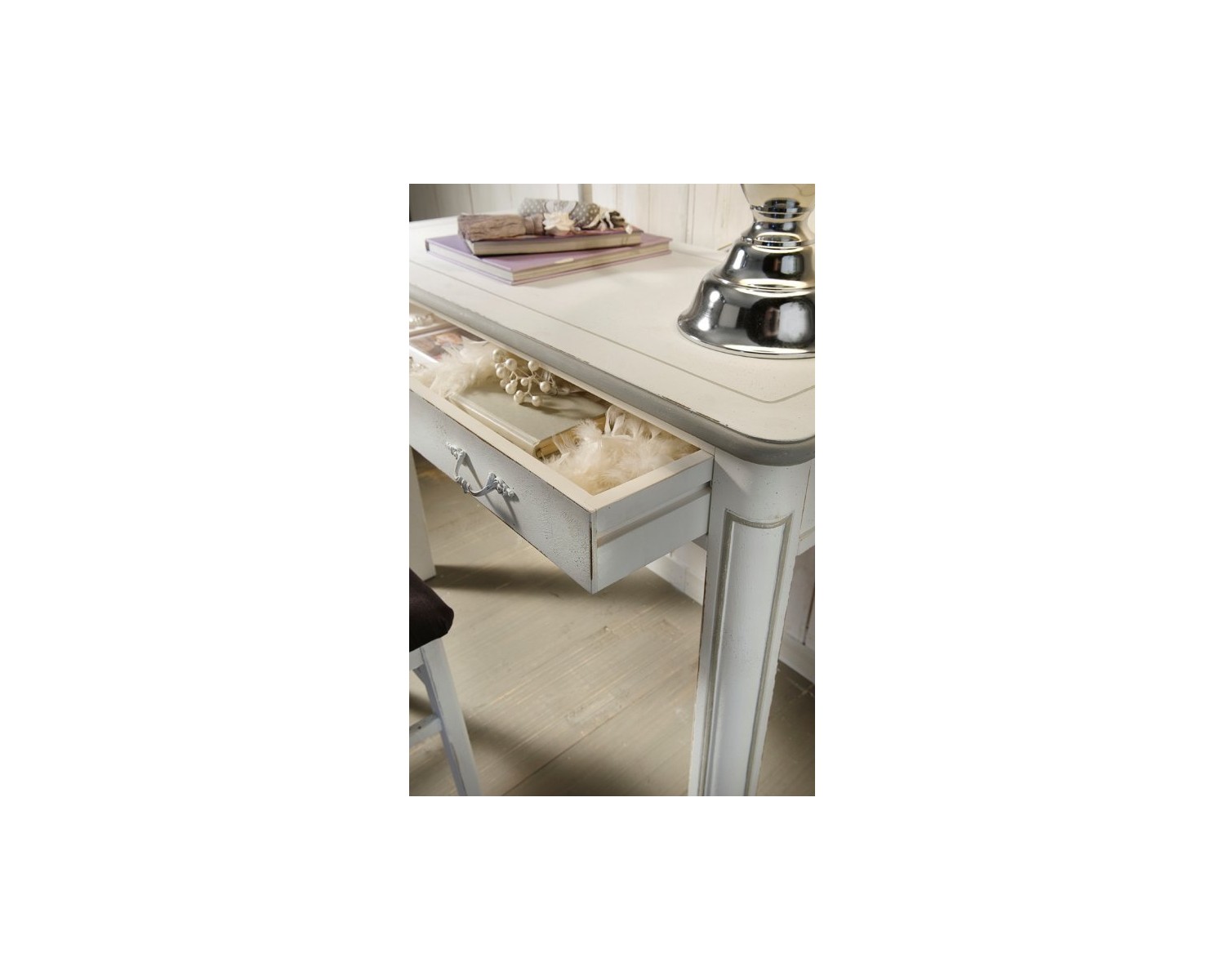 SCRITTOIO TAVOLO CONSOLLE LEGNO MASSELLO BIANCO ANTICATO PROFILO GRIGIO - COUNTRY VENETO ANTICATO DIMESIONE L. 111 - P. 51 - H. 80 POSSIBILE PRODURRE IN VARI COLORI E DECORI - TEMPI DI PRODUZIONE 25 GIORNI - PRODOTTO ITALIANO ARTIGIANATO VENEDTO