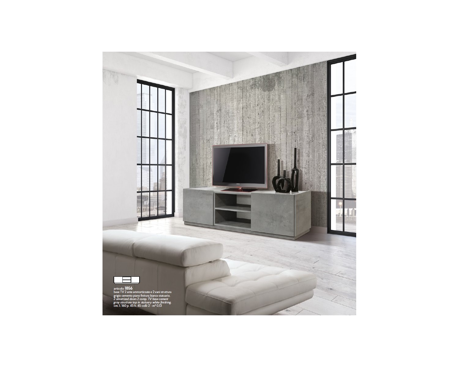 porta tv Base tv 2 ante ammortizzate e 2 vani 160x45 struttura grigio cemento e piano finitura bianco statuario